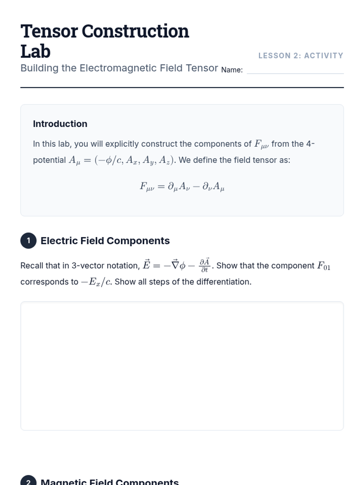 Construction of the electromagnetic field tensor and the formulation of Maxwell's equations in covariant form.