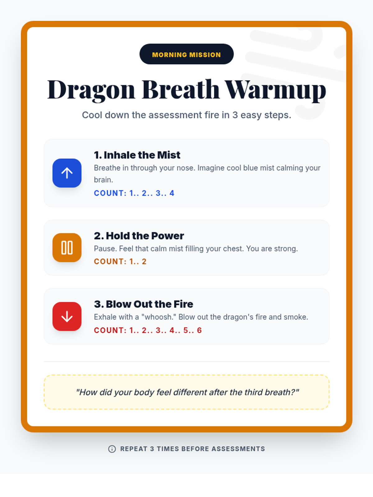 A comprehensive social-emotional learning lesson designed to help students navigate testing anxiety using mindfulness, somatic grounding, and cognitive reframing. This lesson equips students with 'micro-moments' of calm to regain control during high-stakes assessments.