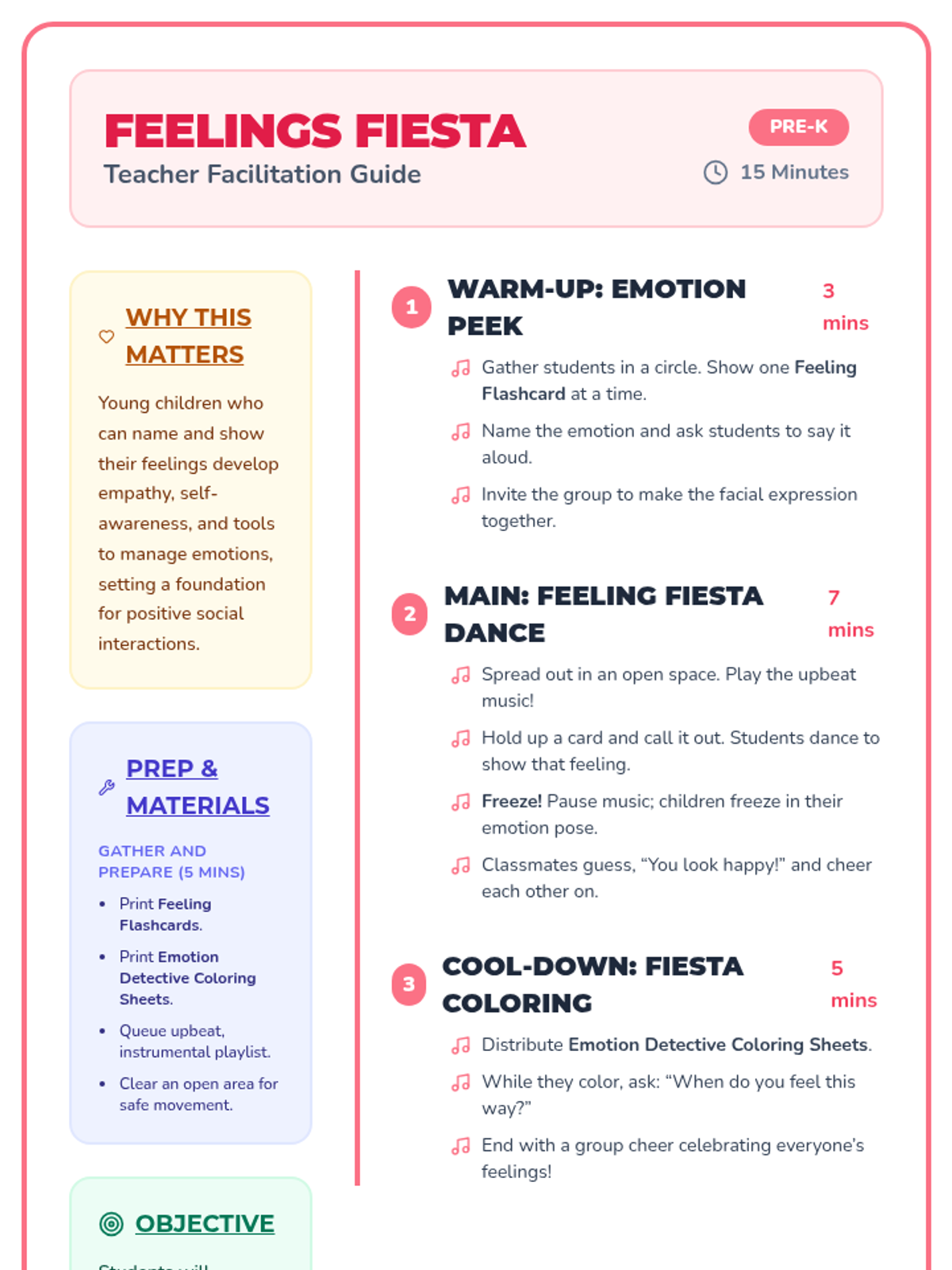 Students celebrate their emotions through a high-energy dance activity where they move and freeze according to different feeling cards.