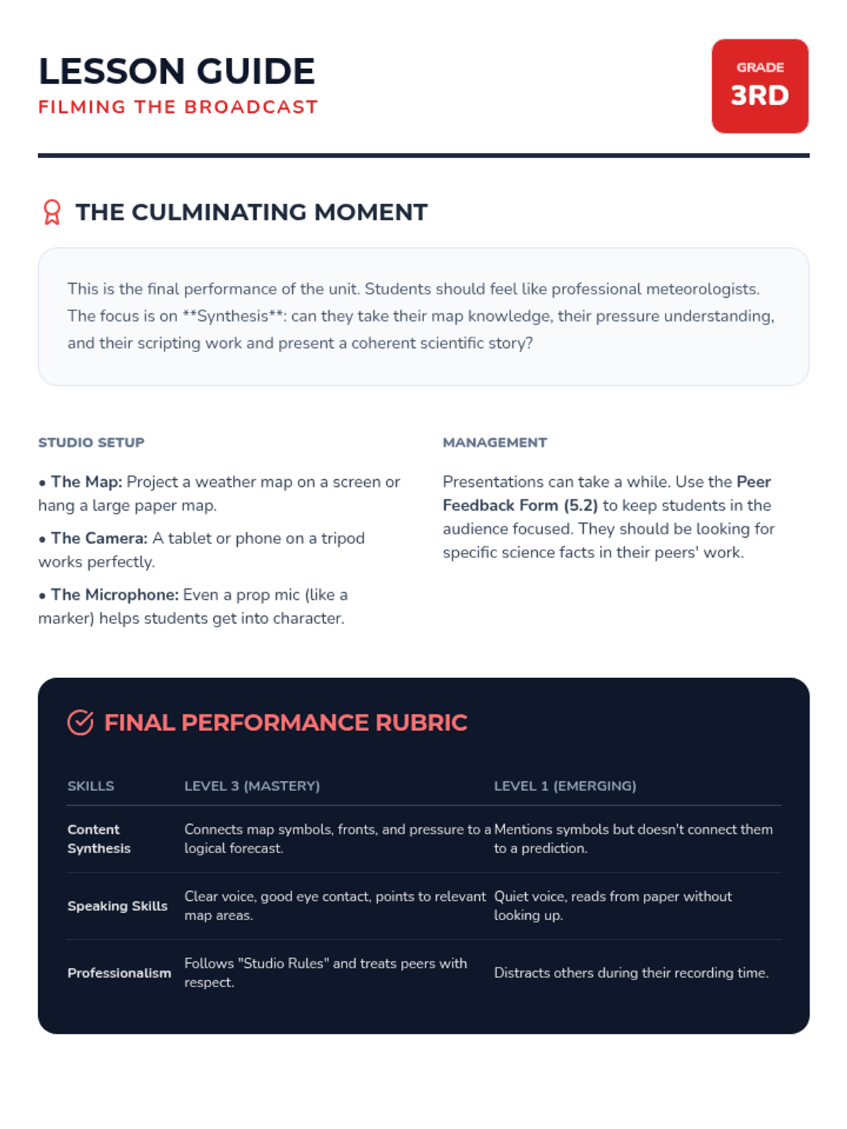 The culminating project where students present their forecasts in a simulated studio environment, demonstrating their mastery of weather science.