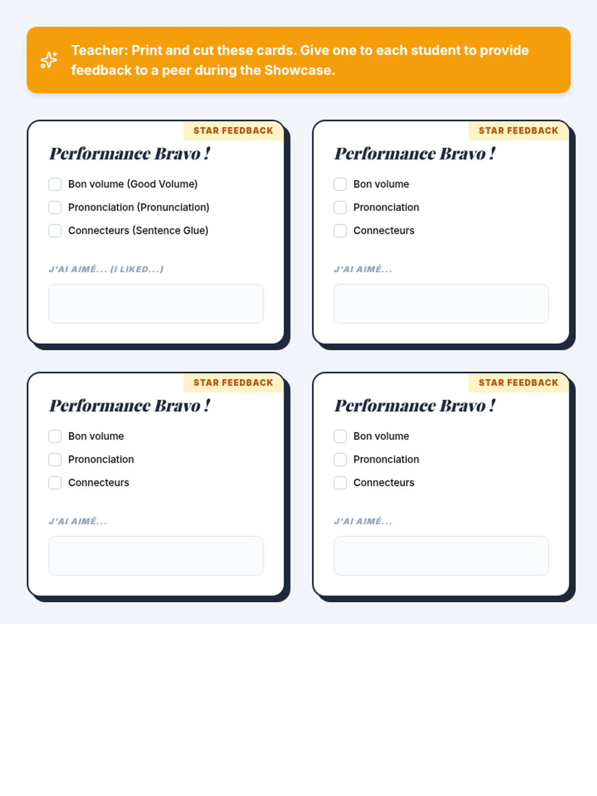Performing final dialogues in a 'Red Carpet' showcase to demonstrate conversational mastery.