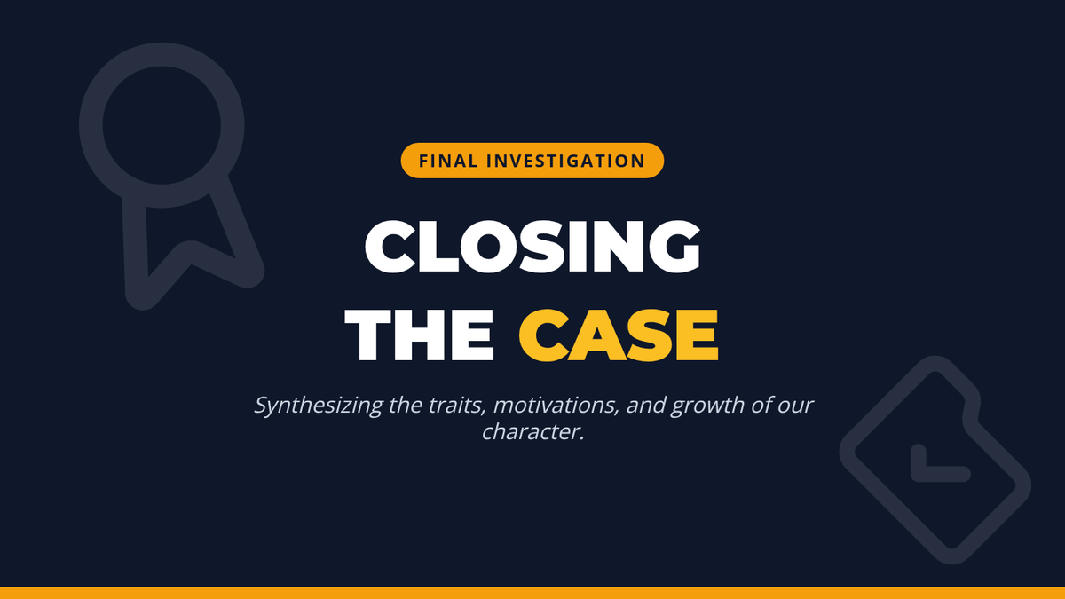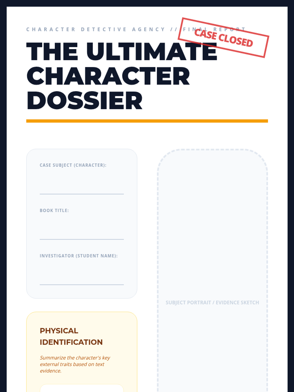 A culminating project where students synthesize their investigations into a comprehensive Character Profile using quotes and specific evidence.
