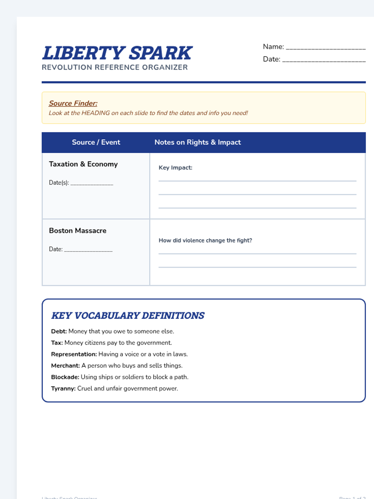 A fast-paced overview of the key events leading to the American Revolution, designed for 4th graders to understand how colonial anger built over time.