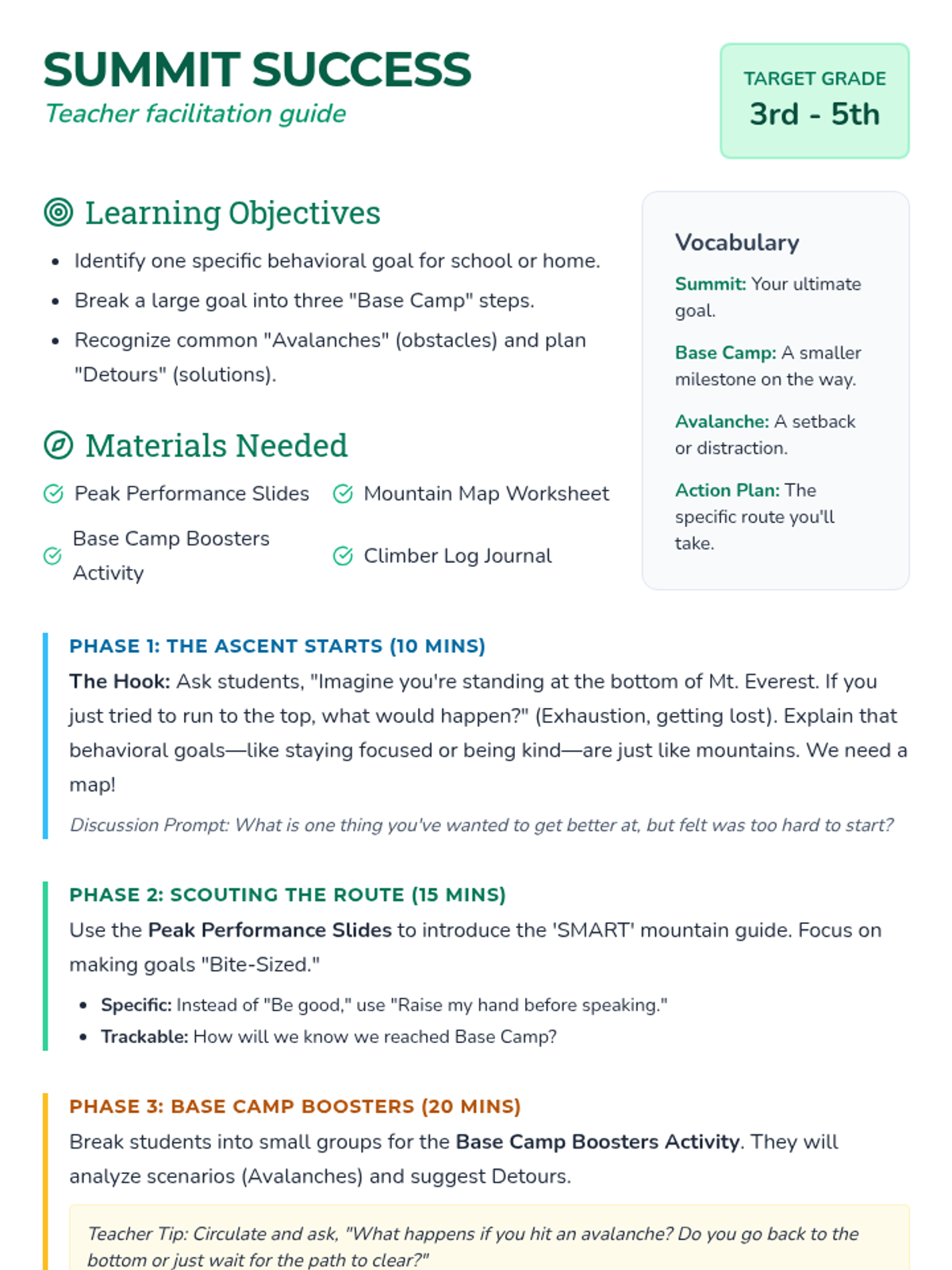 A capstone week that reviews all previous concepts and challenges students to apply their 'Mind Gym' skills to a final group project or reflection.