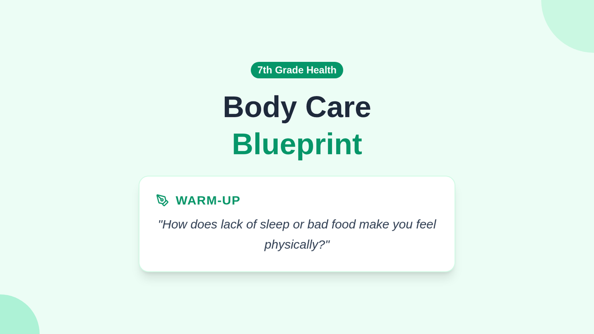 A quick and engaging lesson designed to help middle school students understand the importance of self-care and develop their own personalized routines for mental and physical well-being.