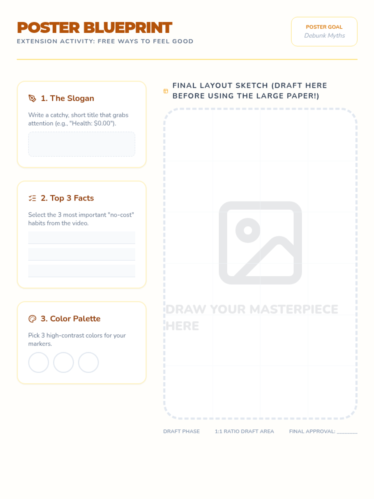 Students explore how physical activity triggers the release of endorphins, acting as a natural mood booster, and create a 'menu' of accessible ways to get moving.