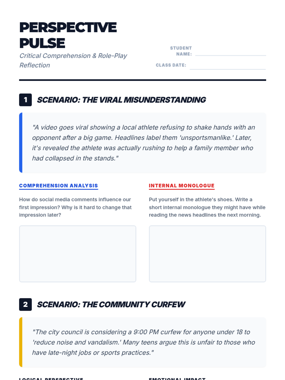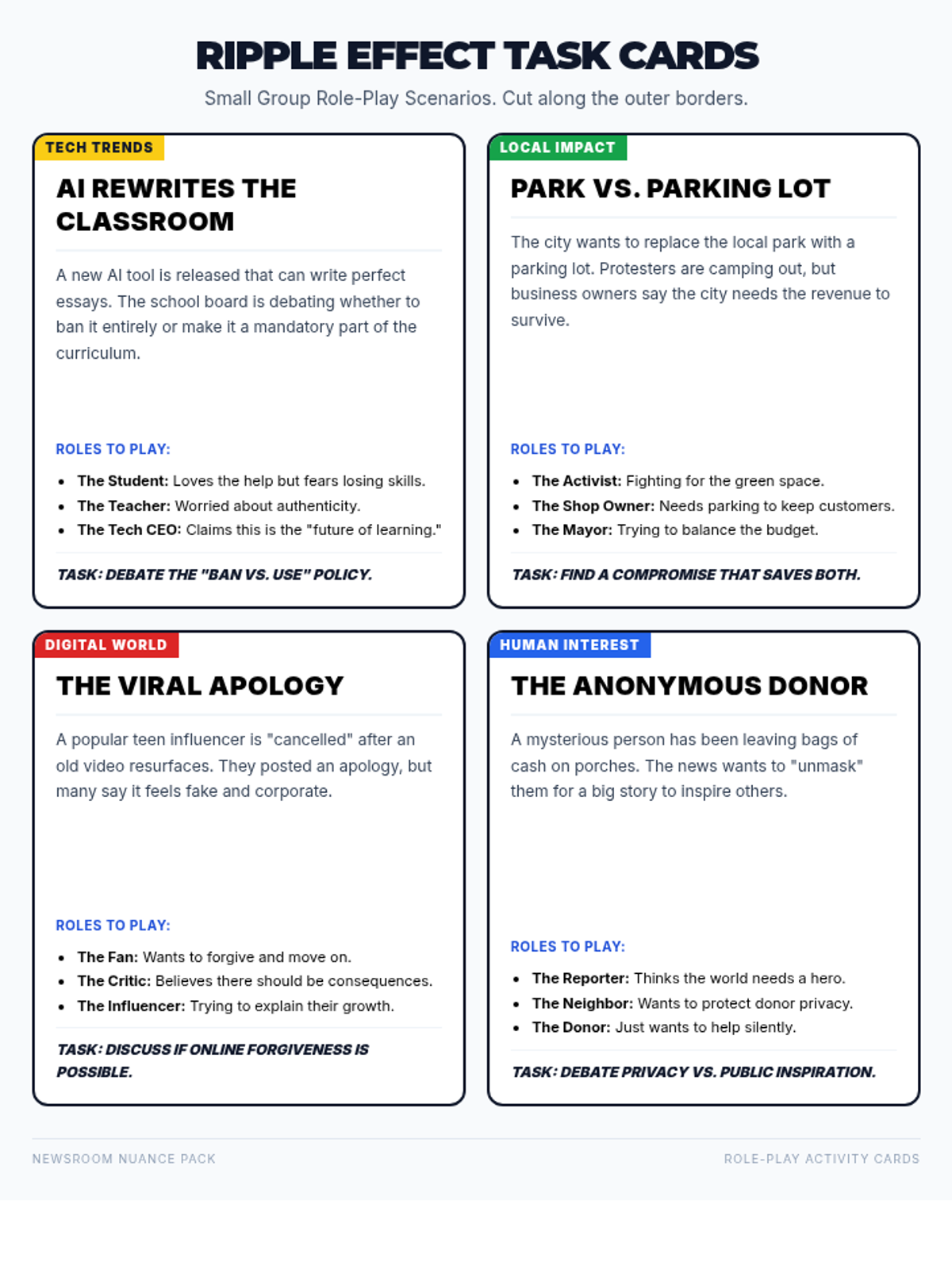 A lesson for 8th graders focused on navigating current news events through a social-emotional lens, using role-play to build empathy and critical thinking.