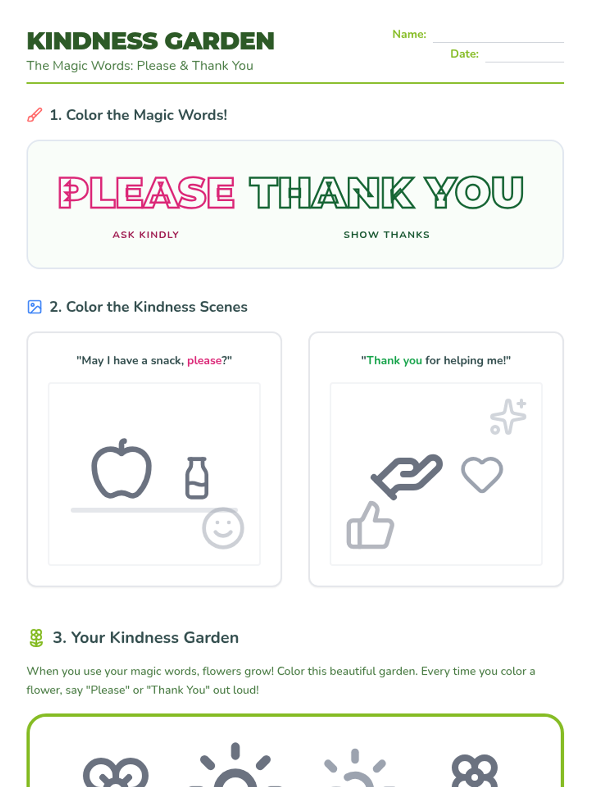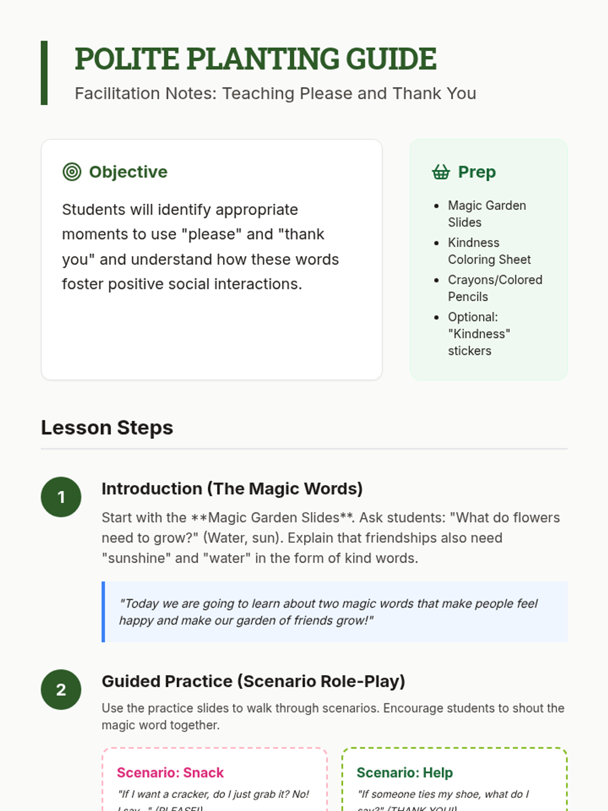 Students explore the social skills of saying 'please' and 'thank you' through a garden-themed lesson that emphasizes how polite words help relationships grow.
