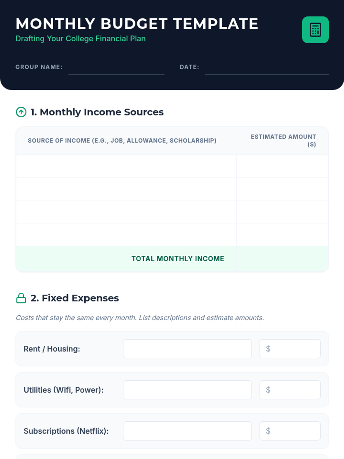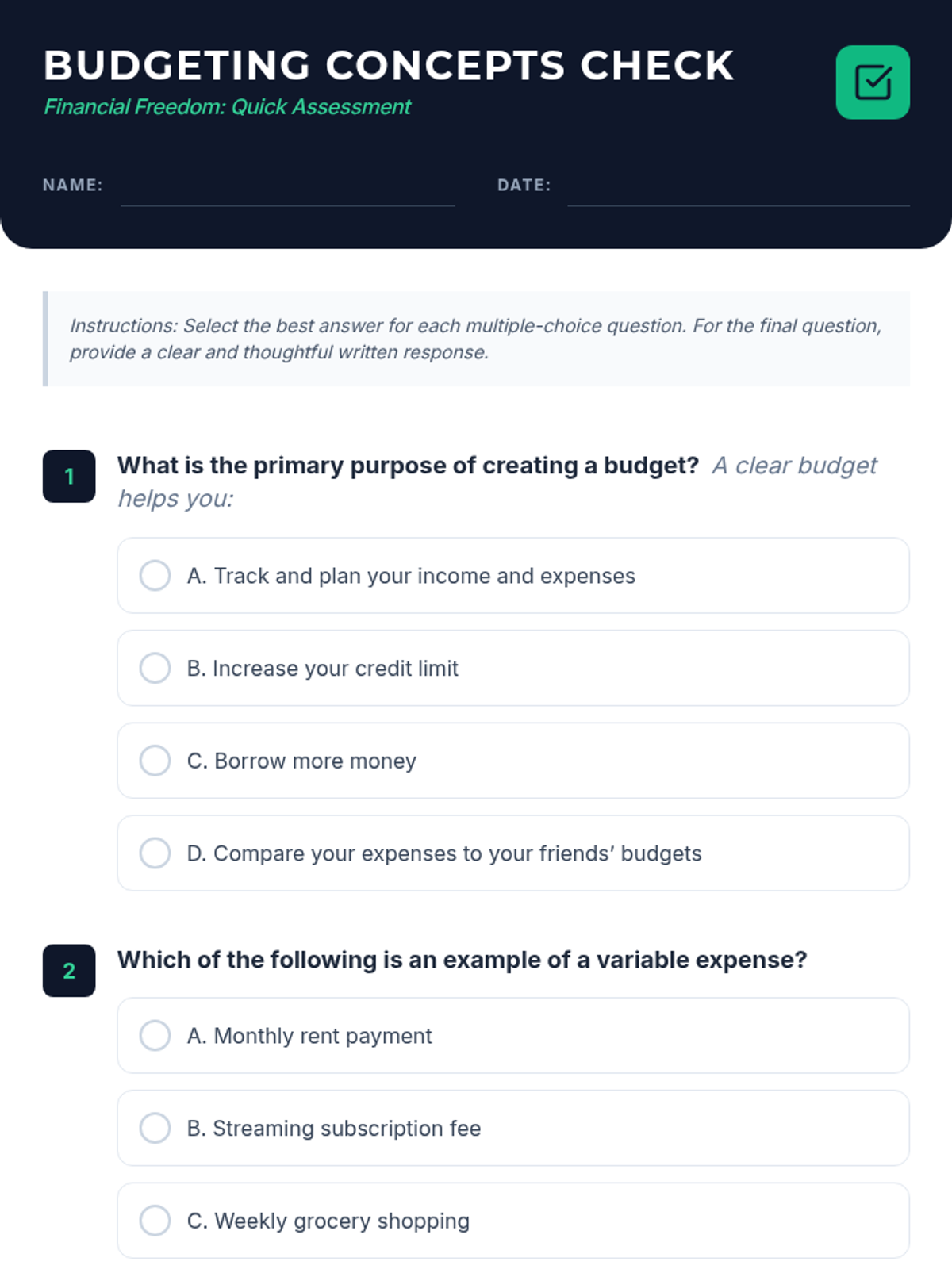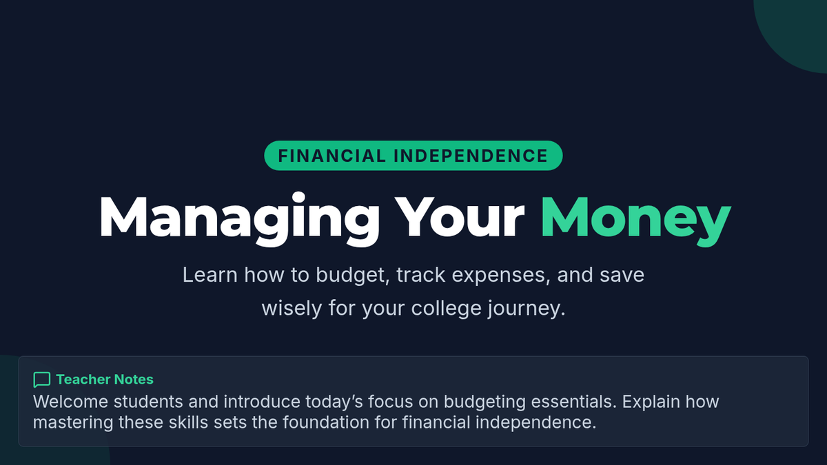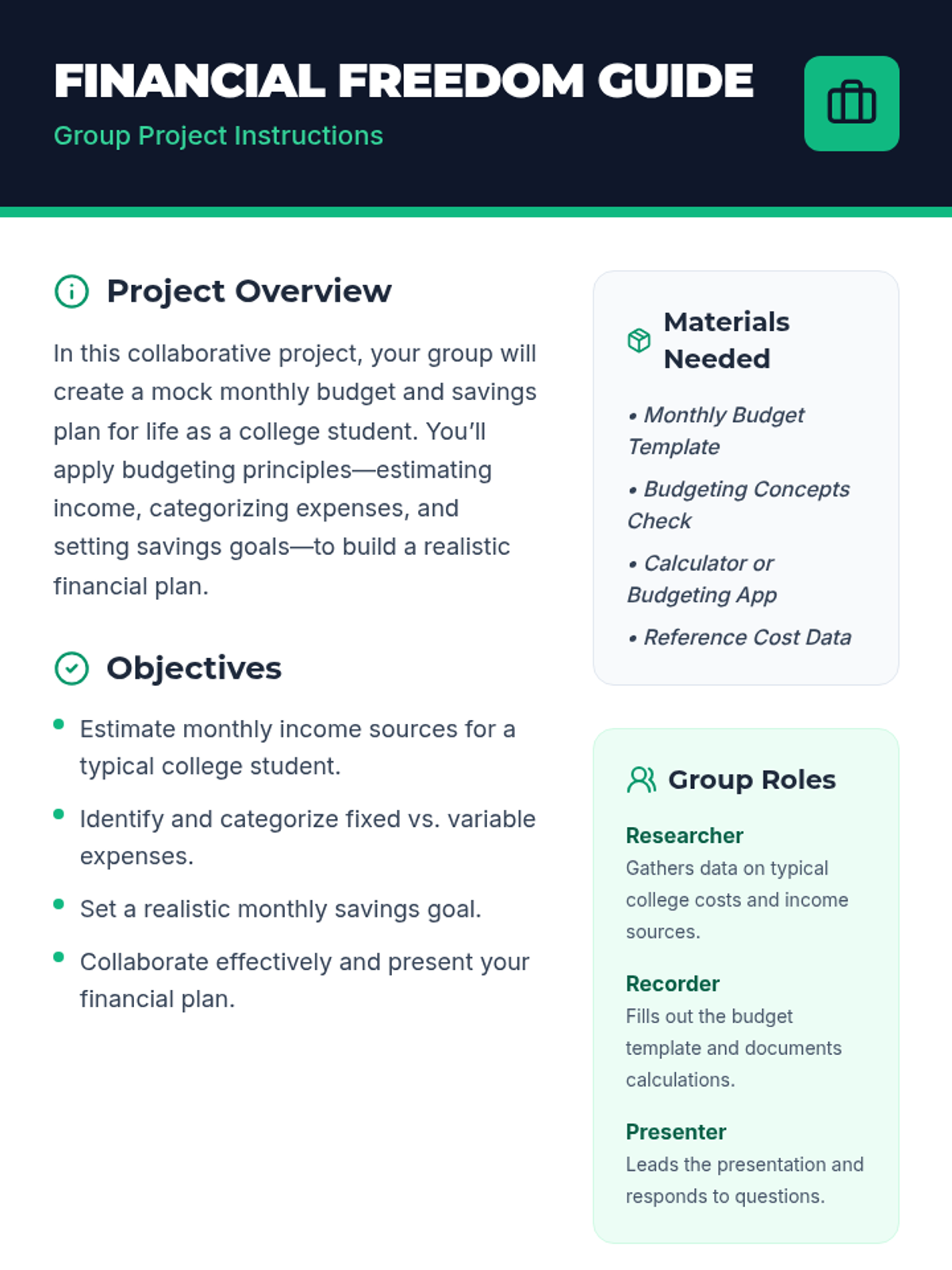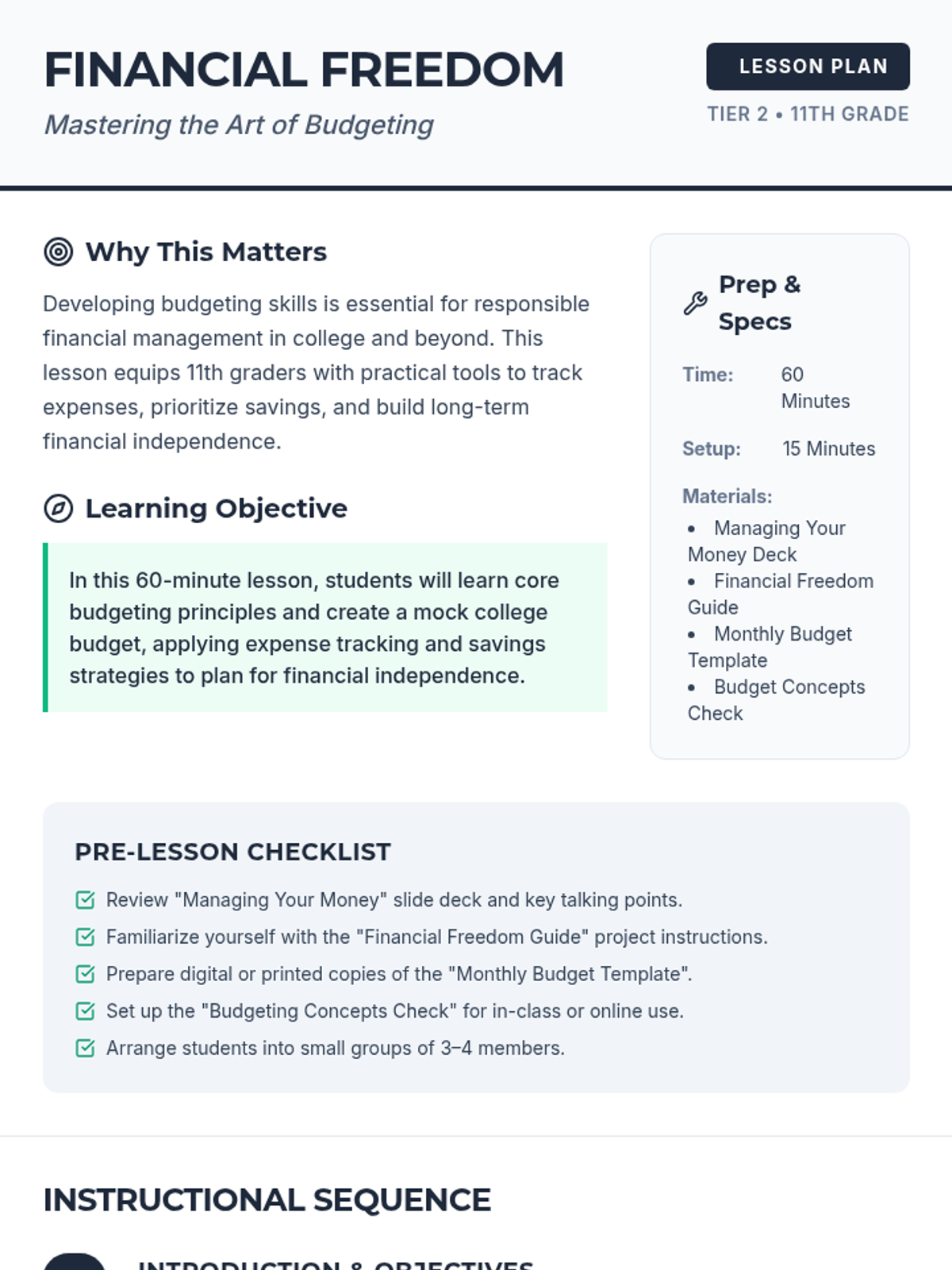 A 60-minute project-based lesson for 11th graders to learn the fundamentals of budgeting and savings as they prepare for financial independence in college.