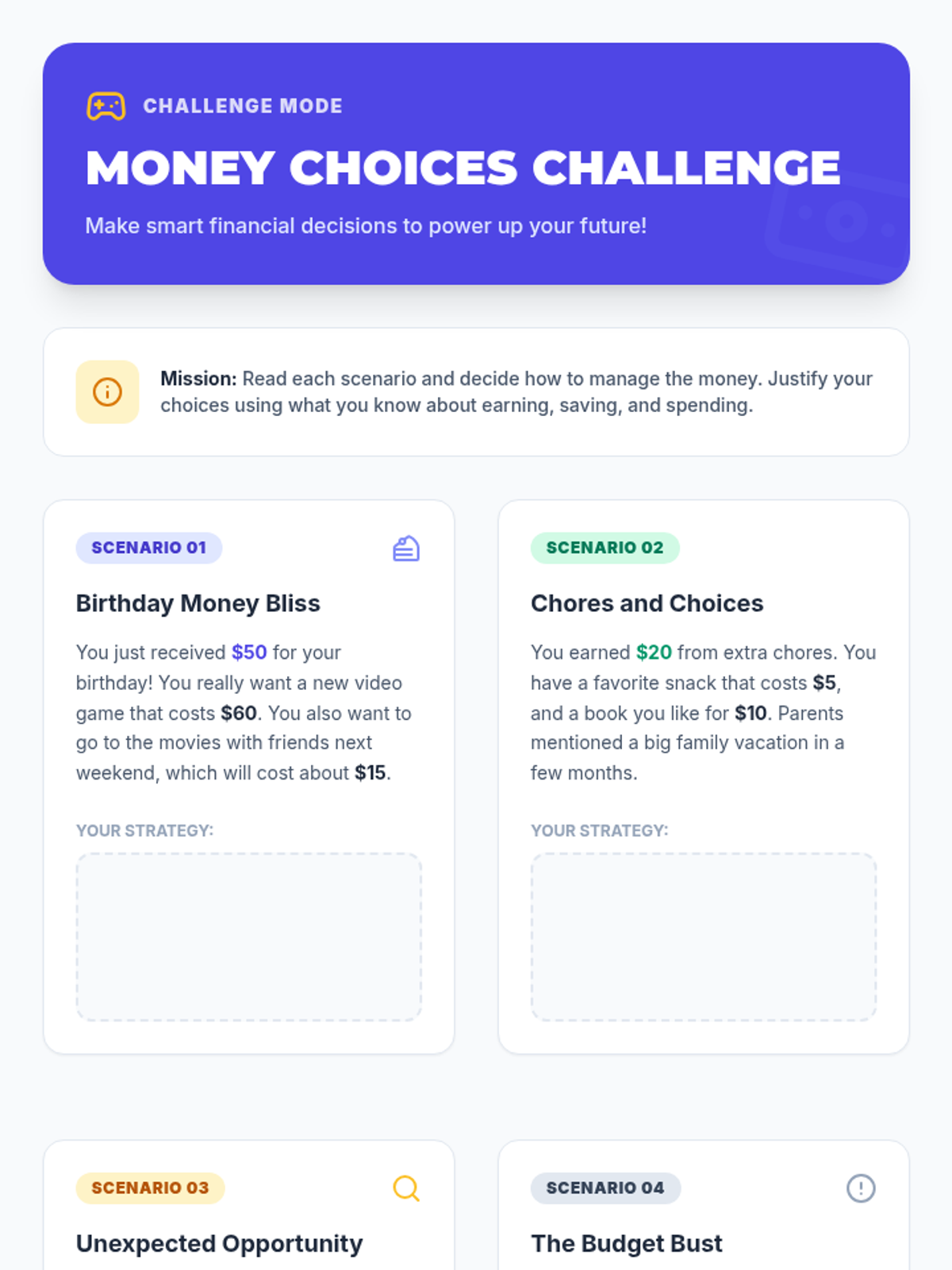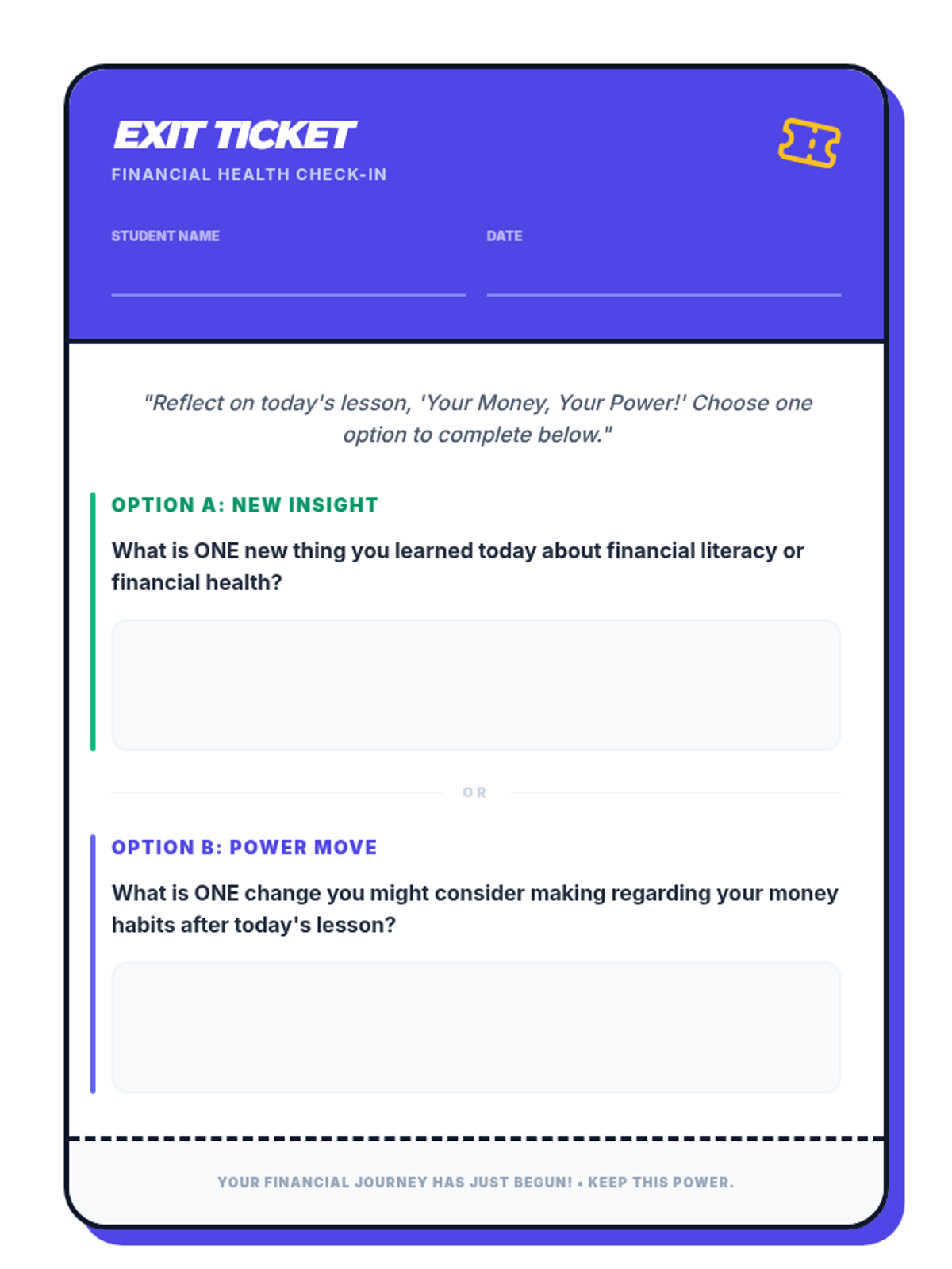 This lesson introduces 8th-grade students to the fundamental concepts of financial health and financial literacy. Students will learn how understanding their money can empower them to make smart decisions for their future.