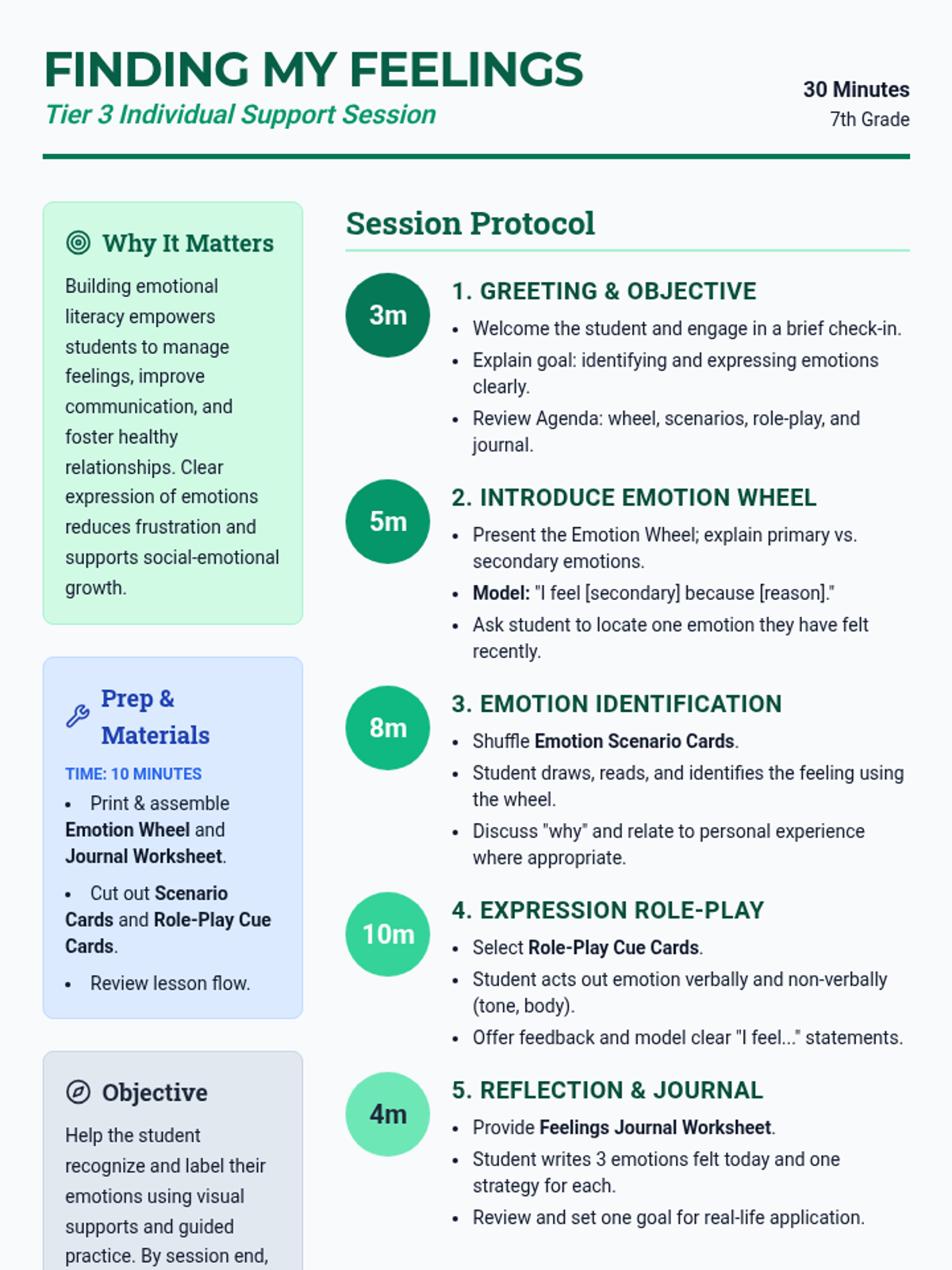 In this one-on-one 30-minute session, a 7th grader will learn strategies to identify and convey emotions clearly. Teaching emotional literacy helps students manage feelings, improve communication, and build healthy relationships.