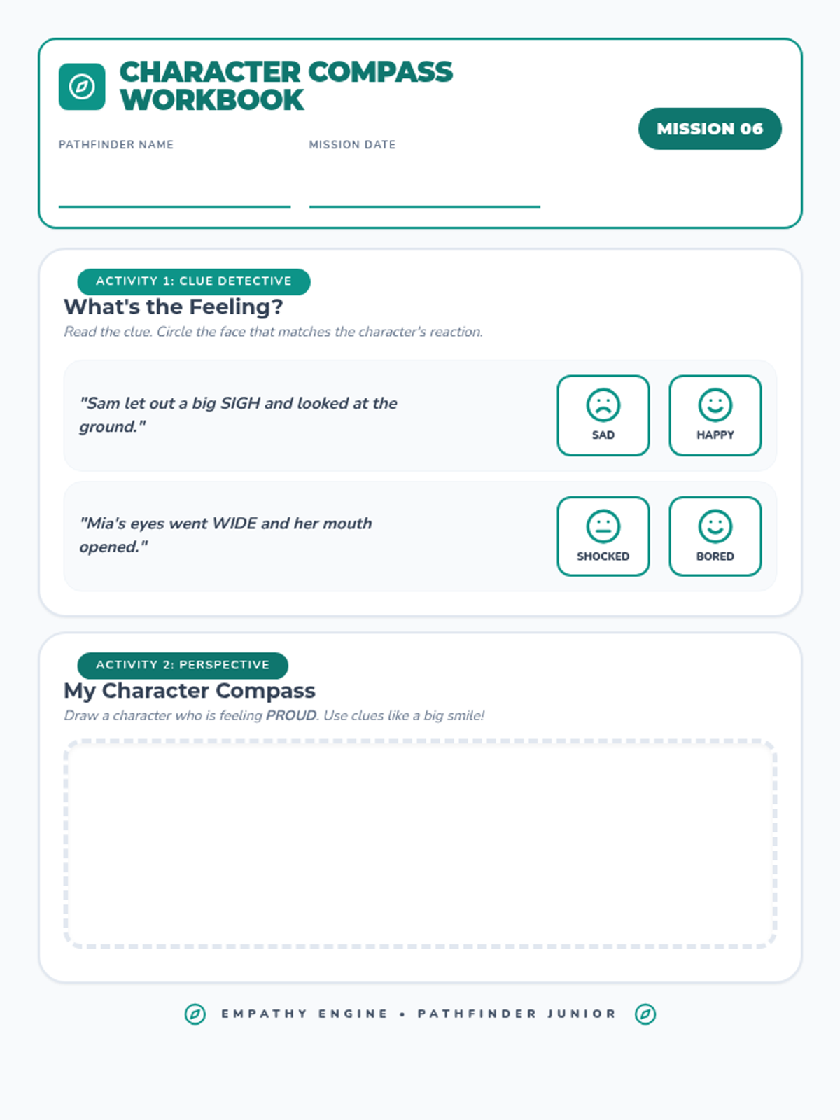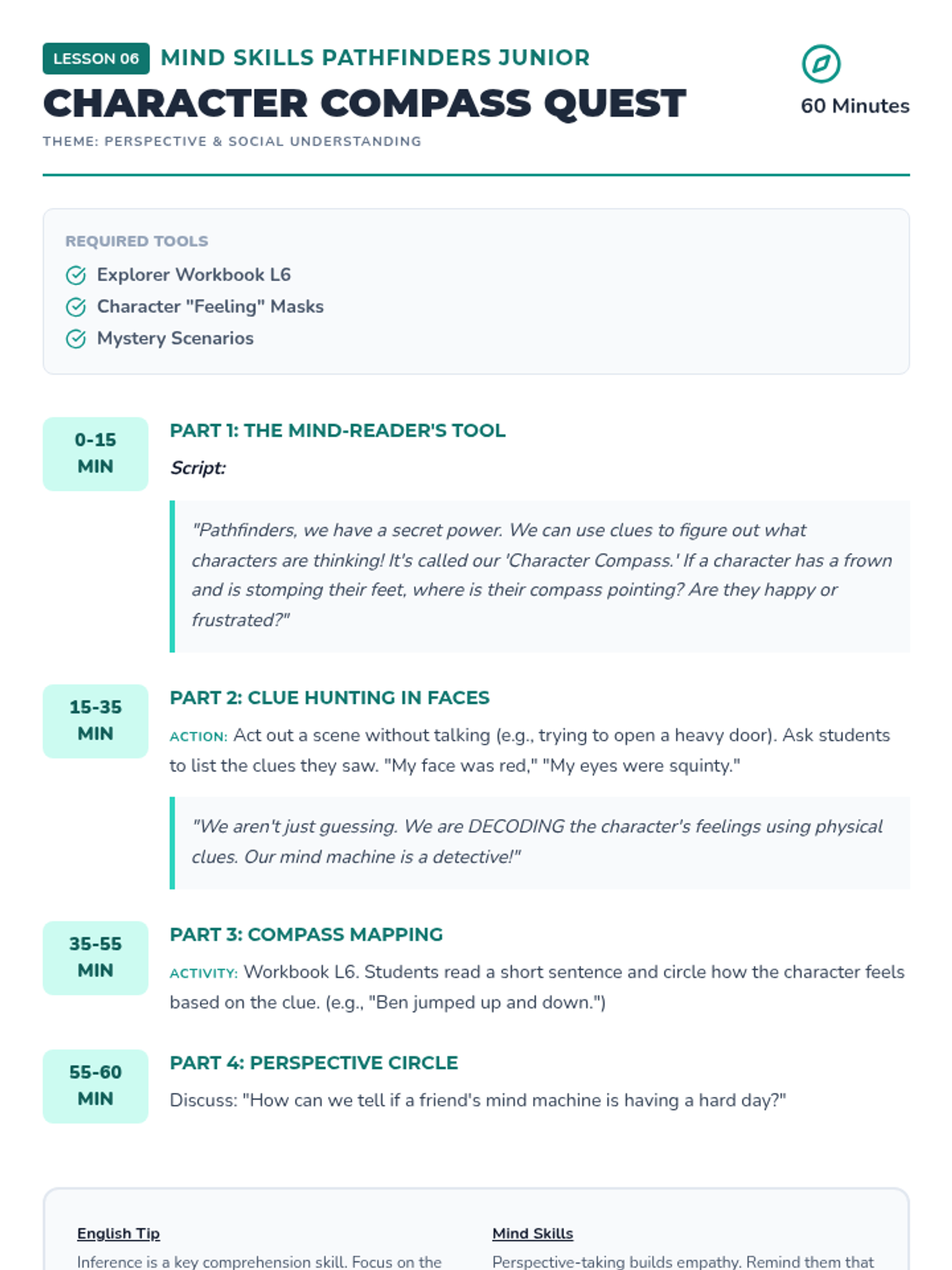 Explores social understanding by teaching students how to use their 'internal compass' to interpret character feelings and perspectives in texts.