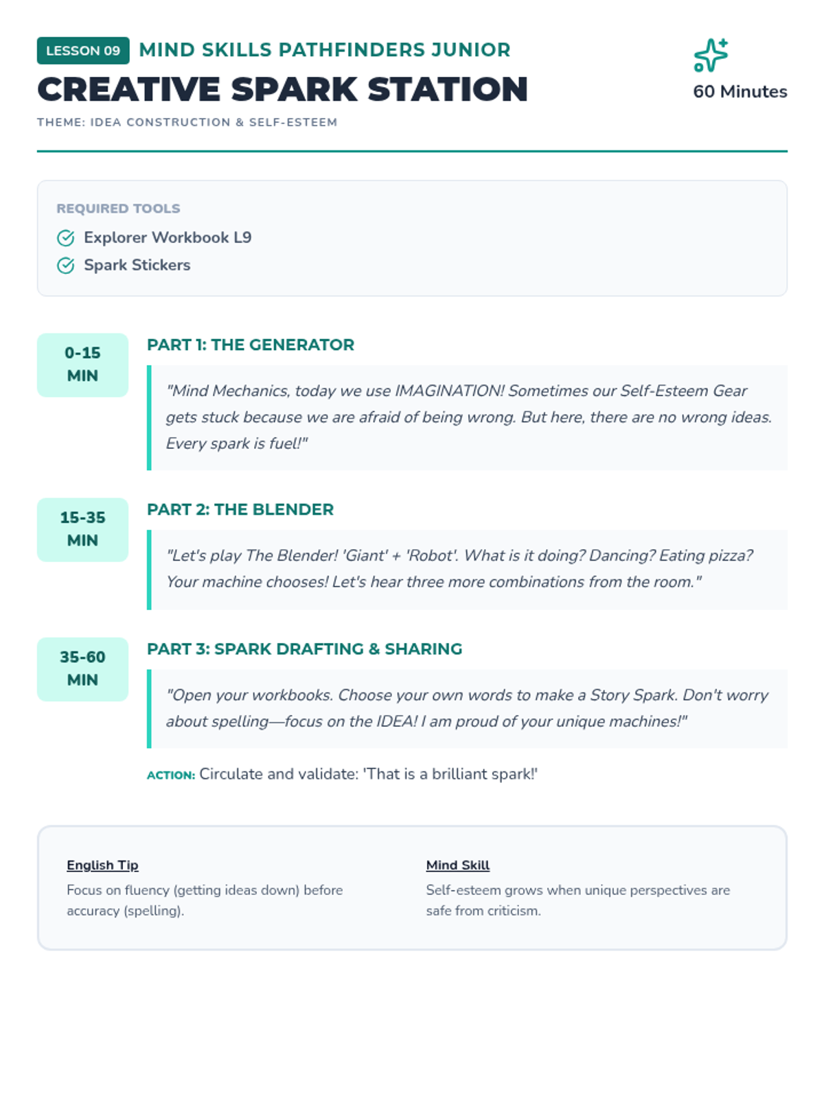Encourages idea construction and creative writing, showing students how to fuel their mind machines with imagination to create original stories.