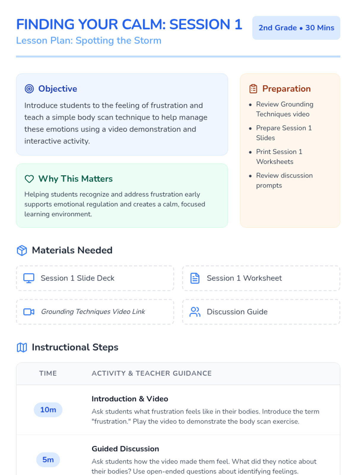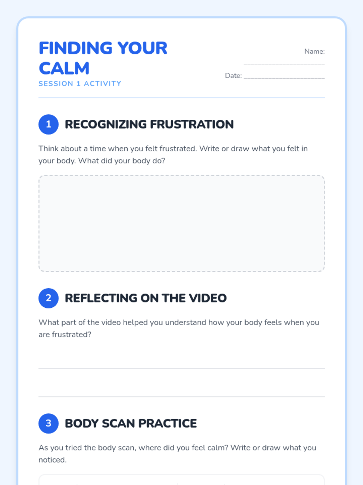 Introduces students to the physical sensations of frustration and teaches the body scan grounding technique.