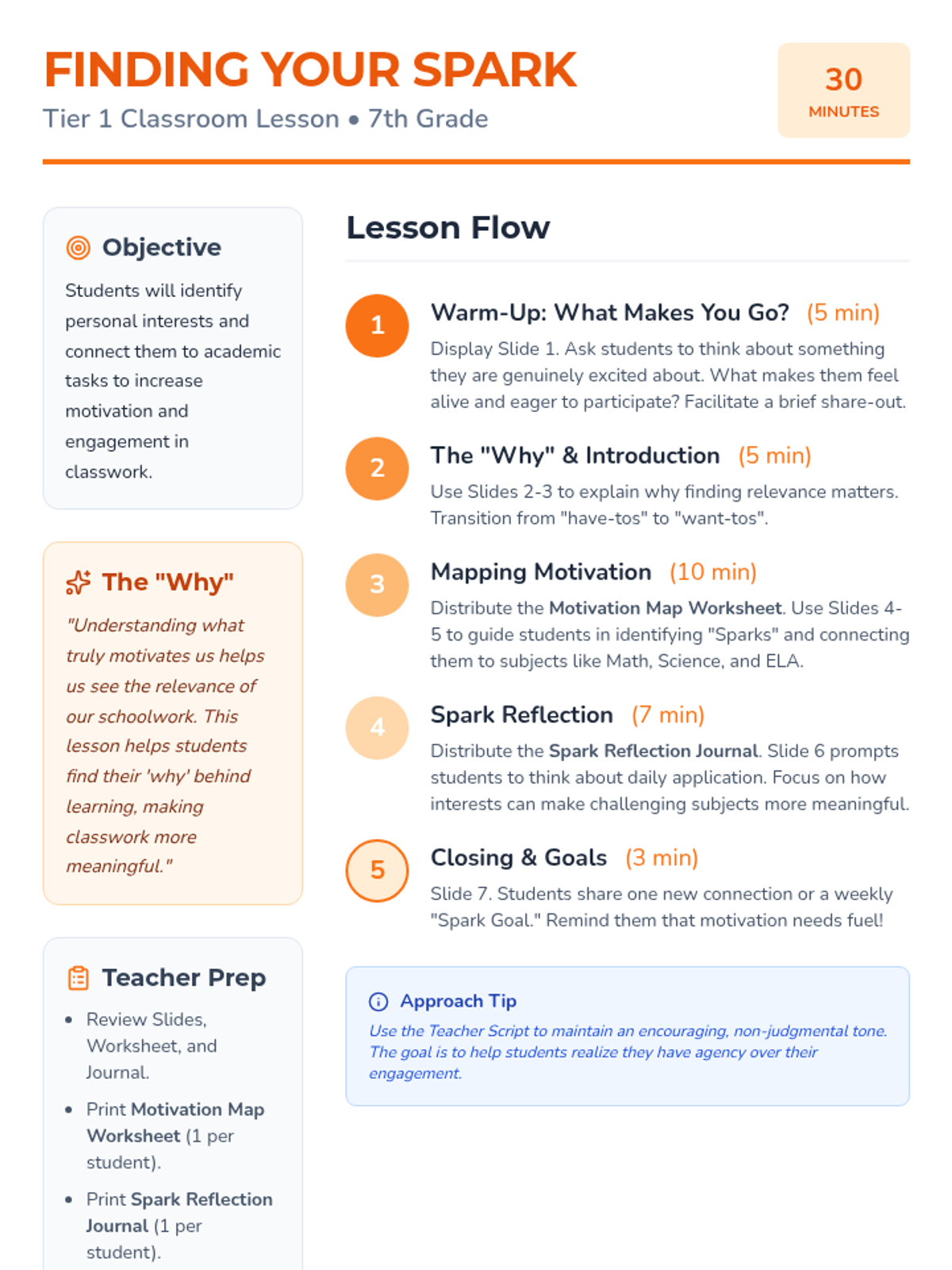 A 30-minute lesson for 7th-grade students to explore personal interests and connect them to their schoolwork, fostering engagement and purpose.