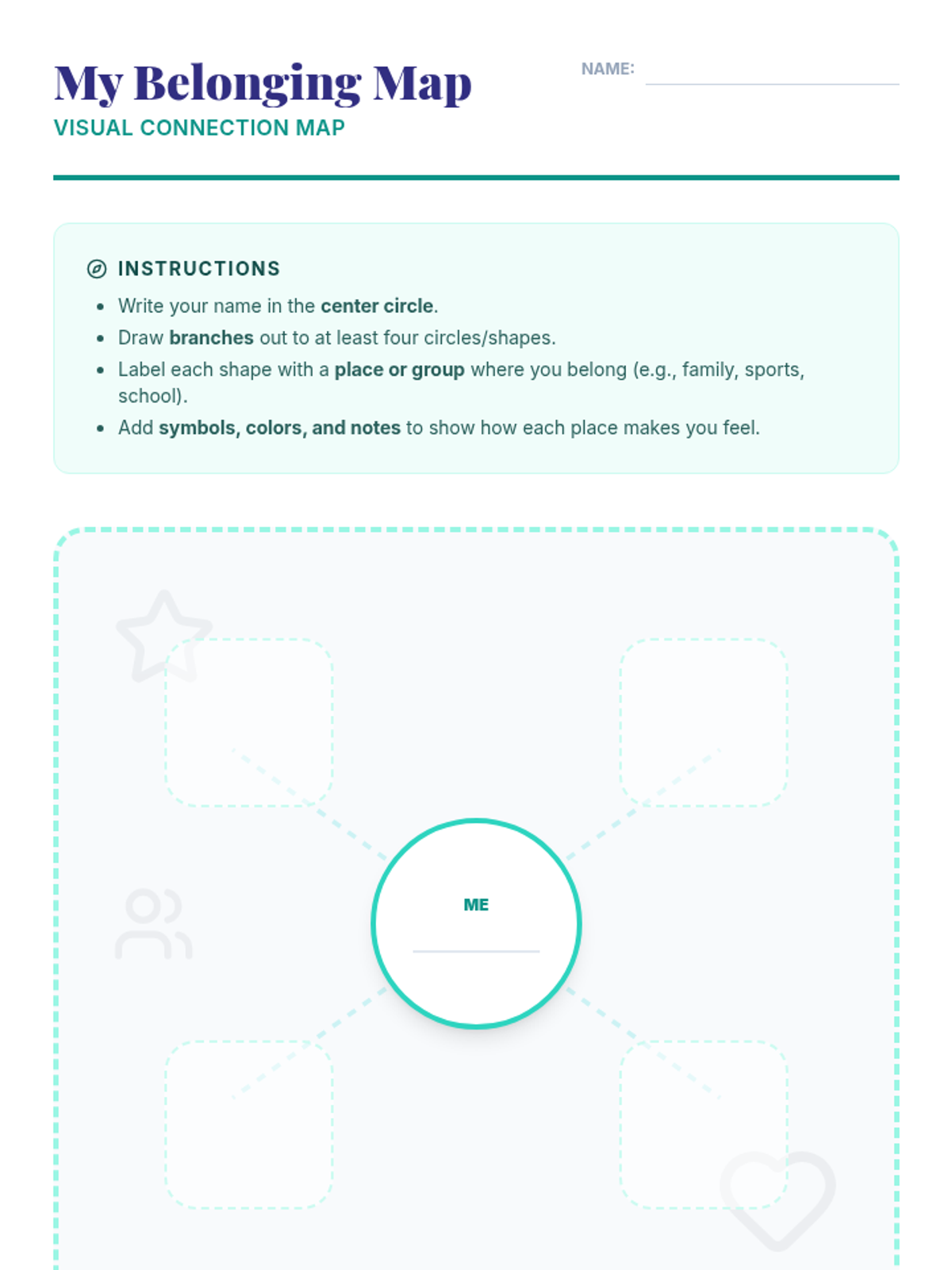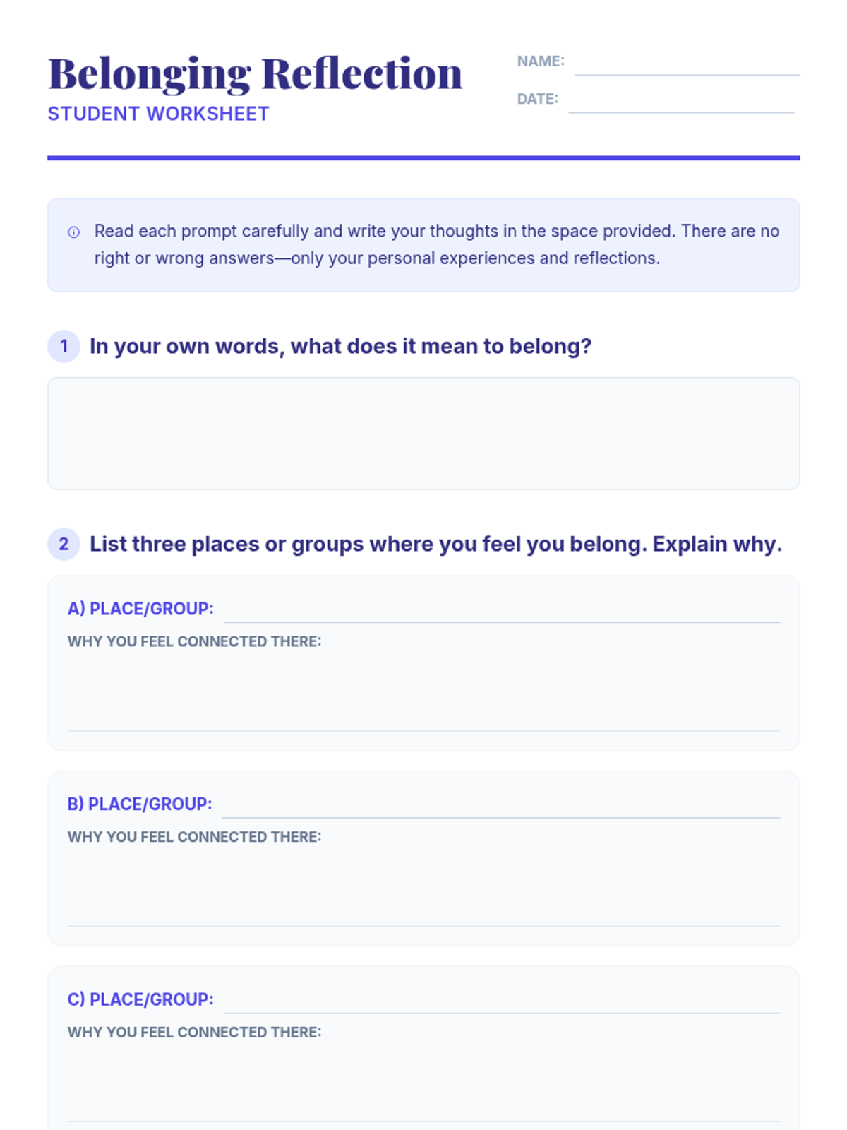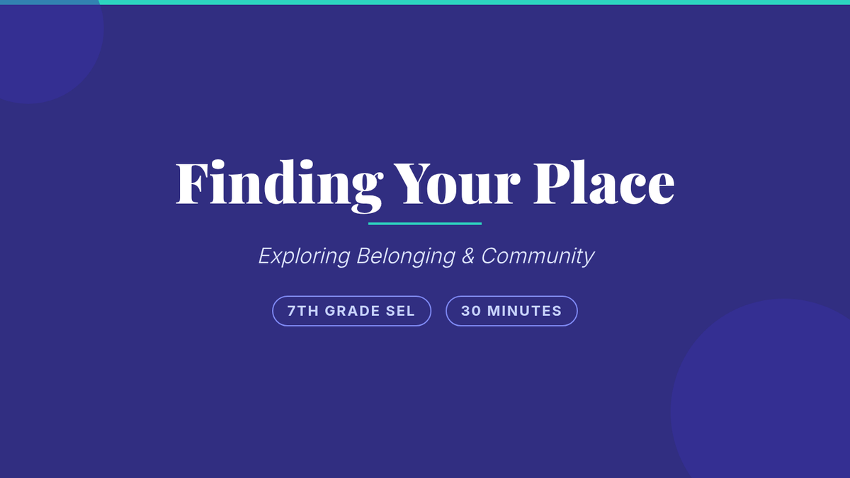 A 30-minute SEL lesson for 7th graders focused on exploring belonging, identifying personal communities, and building classroom empathy through reflection and visual mapping.