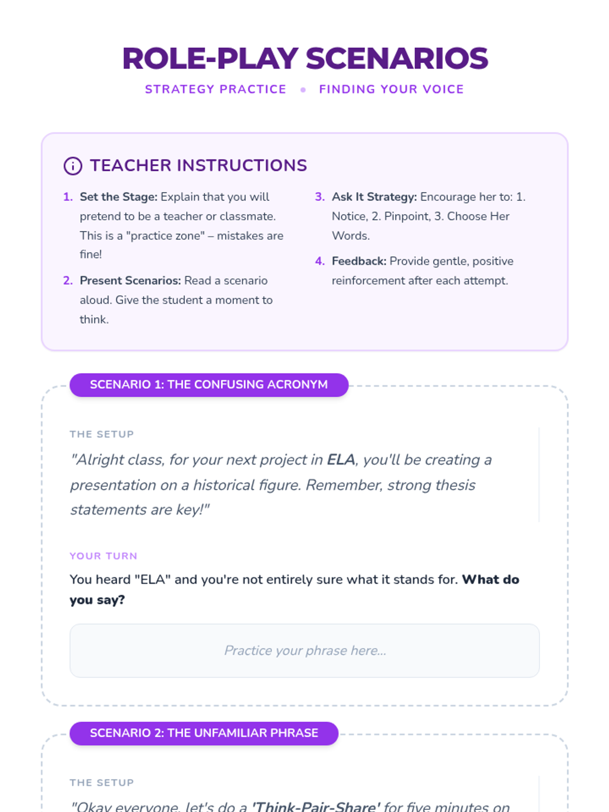 Scaffolding self-advocacy and clarification strategies for students navigating an English-speaking environment.