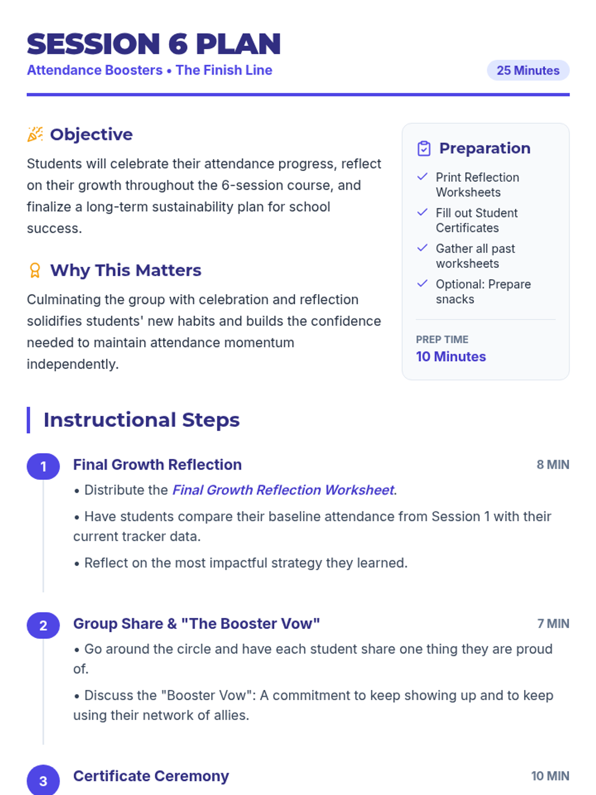 Celebrate progress, reflect on growth, and create a long-term plan for continued attendance success.