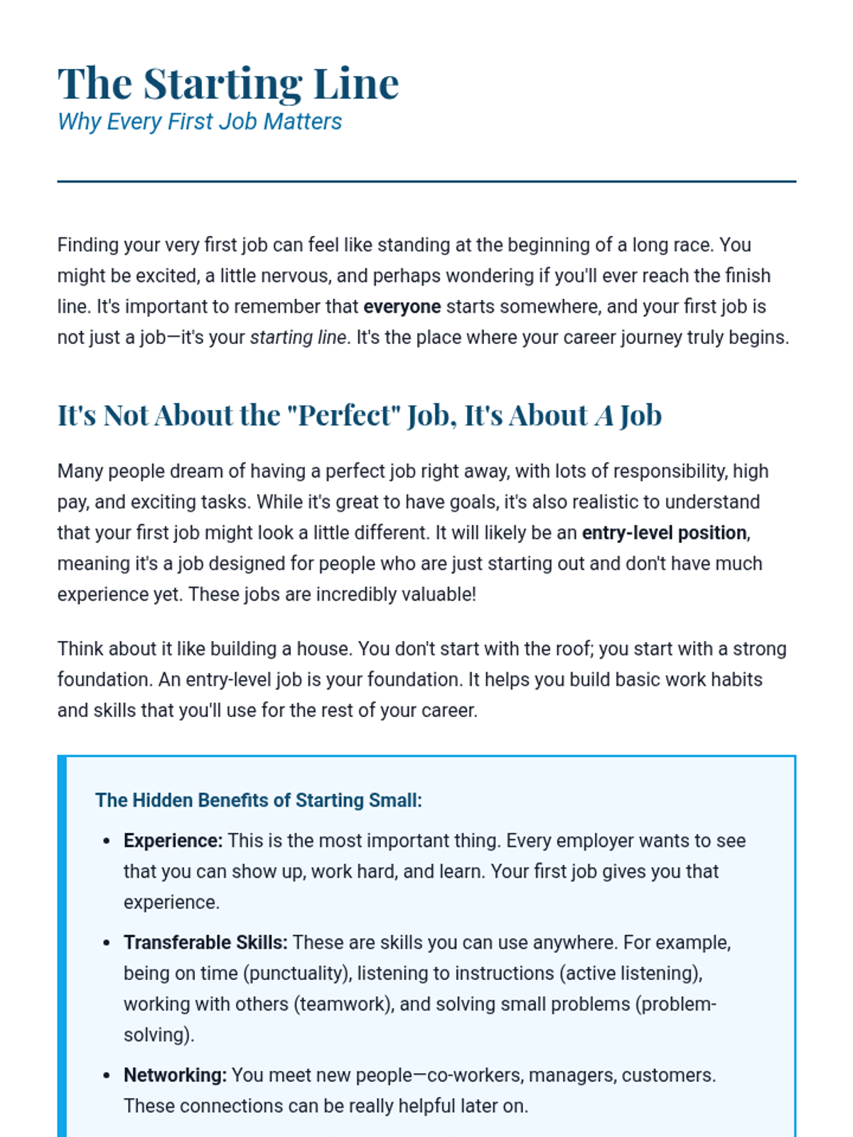 Apply the Hero's Journey framework to the reality of finding and starting a first job, focusing on entry-level roles and resilience.