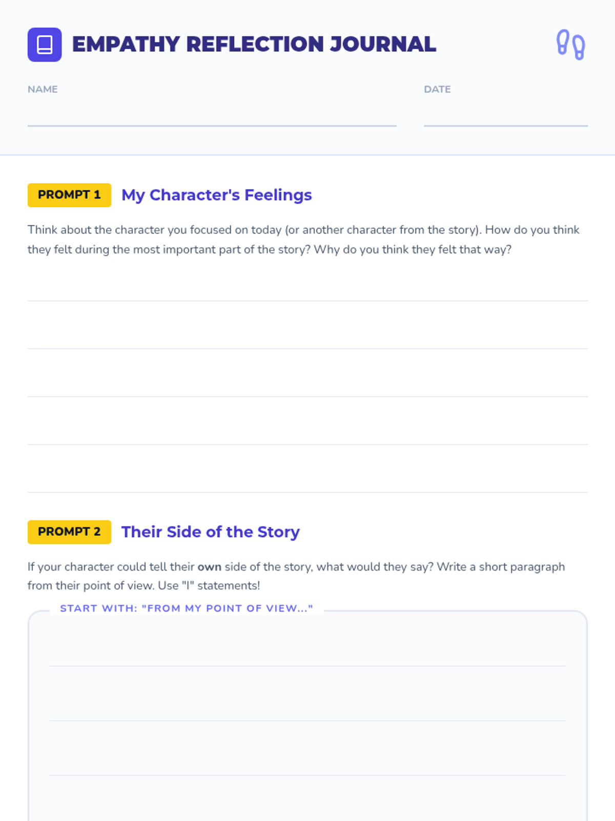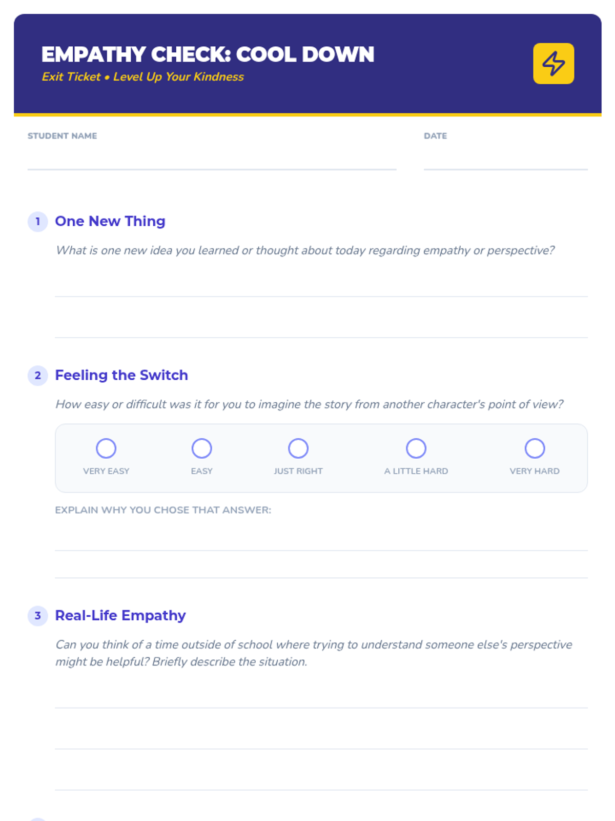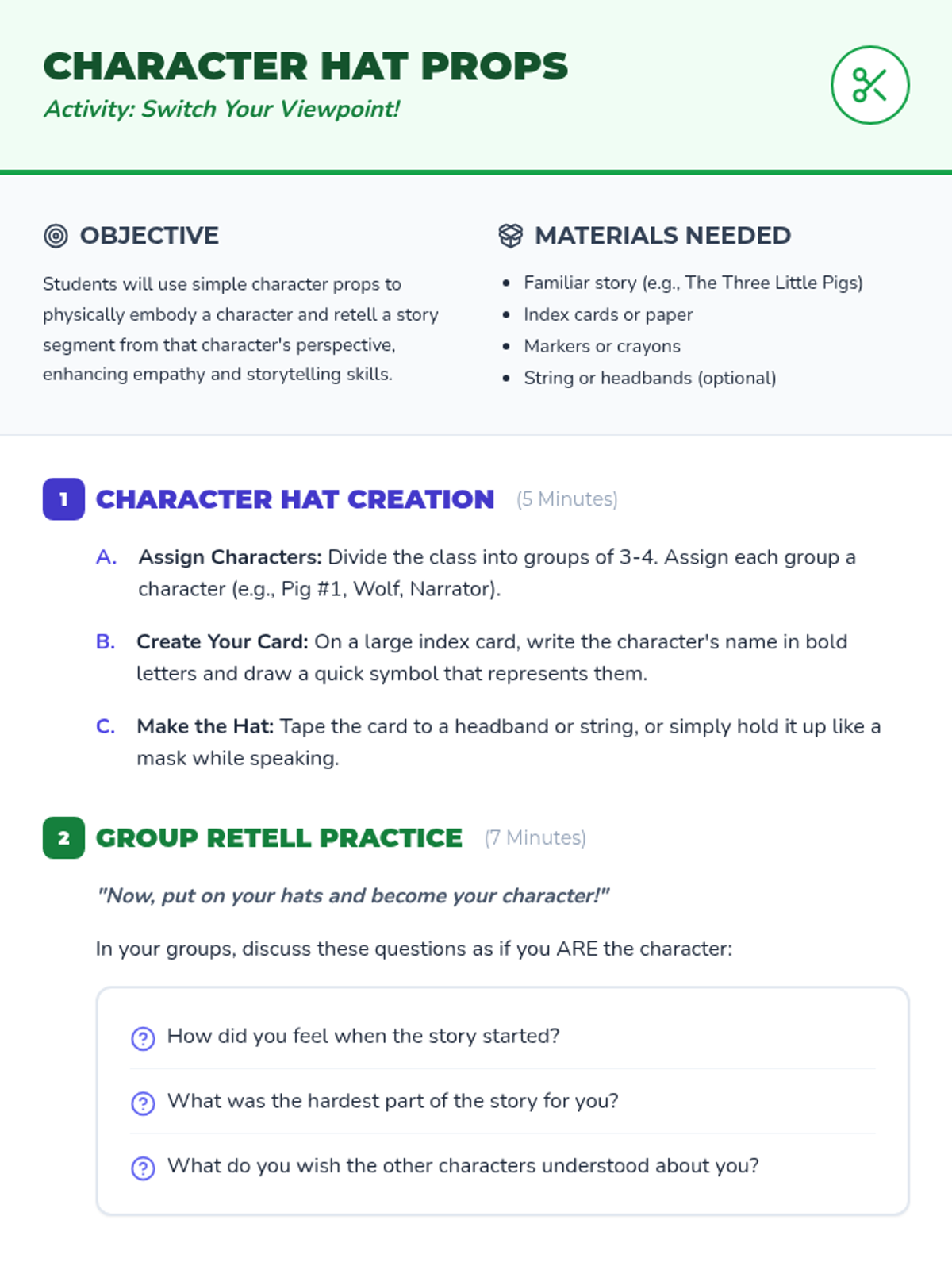 A 30-minute 3rd-grade lesson that helps students practice empathy by retelling familiar stories from different characters' perspectives. Students learn to 'flip the empathy switch' to understand diverse viewpoints.