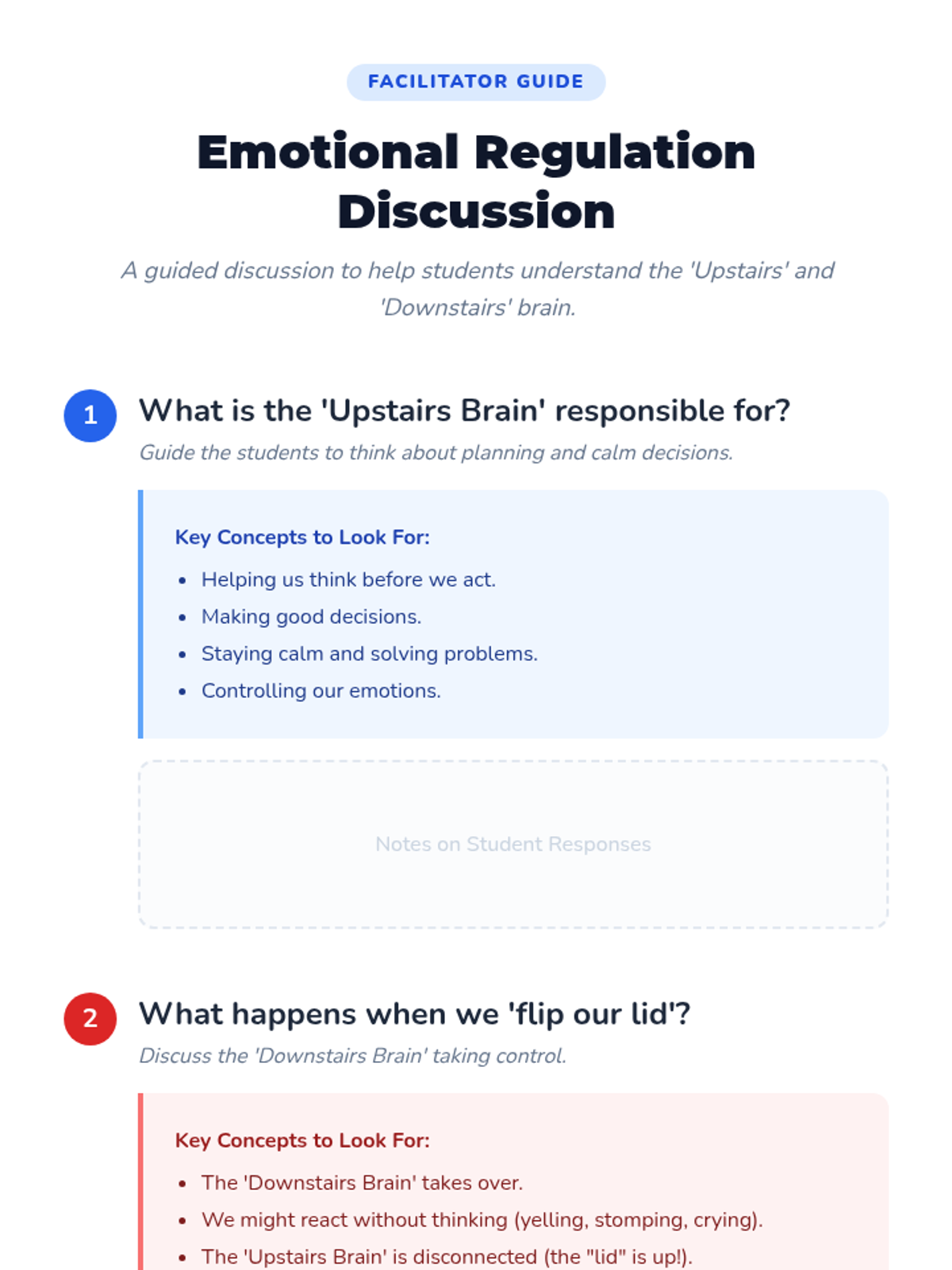 Students watch a video about losing control of emotions, discuss the concept of 'flipping their lid', and begin an art project.