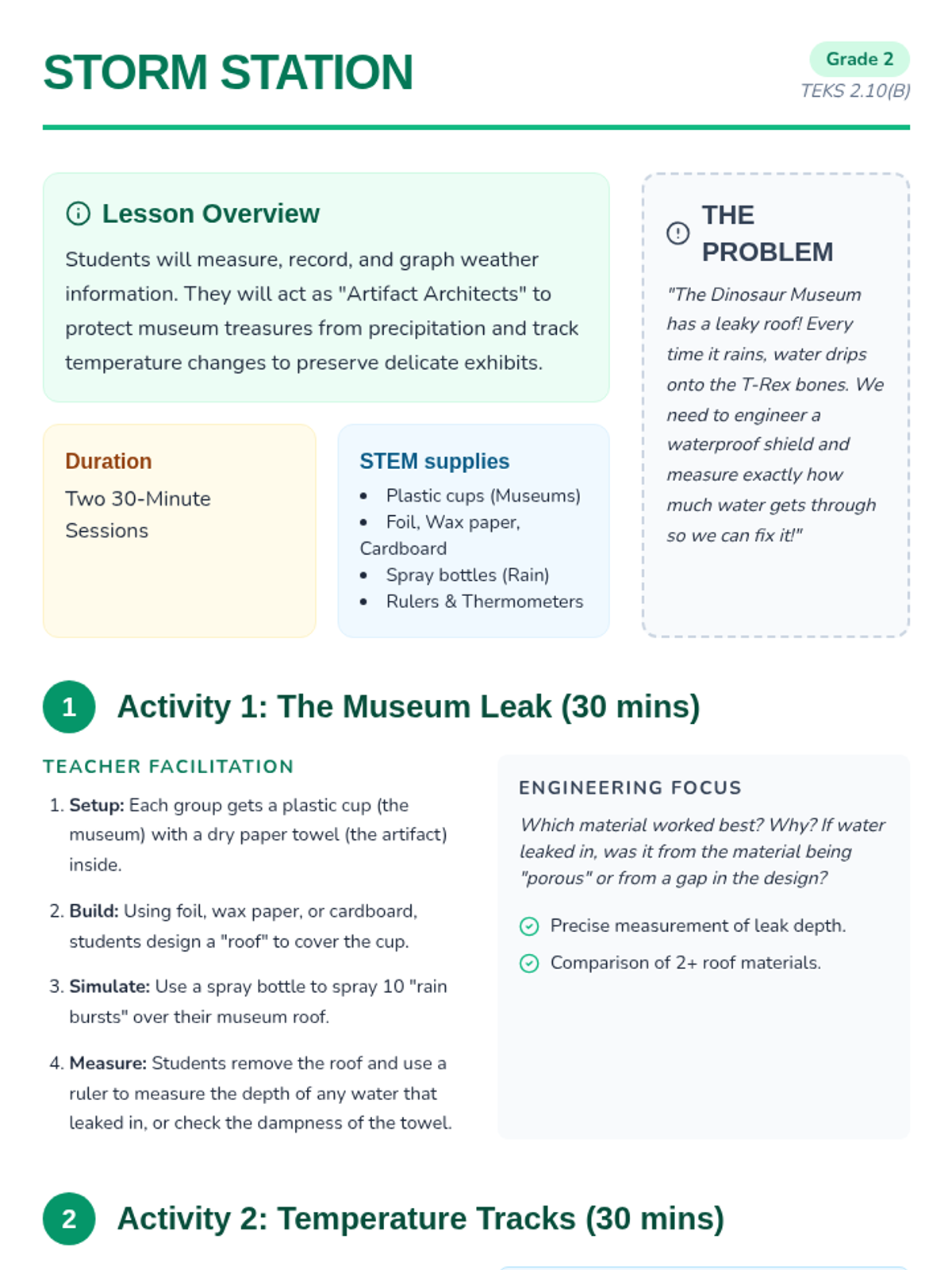 Students in 2nd grade will focus on measuring and graphing weather data by building functional rain gauges and analyzing temperature patterns.
