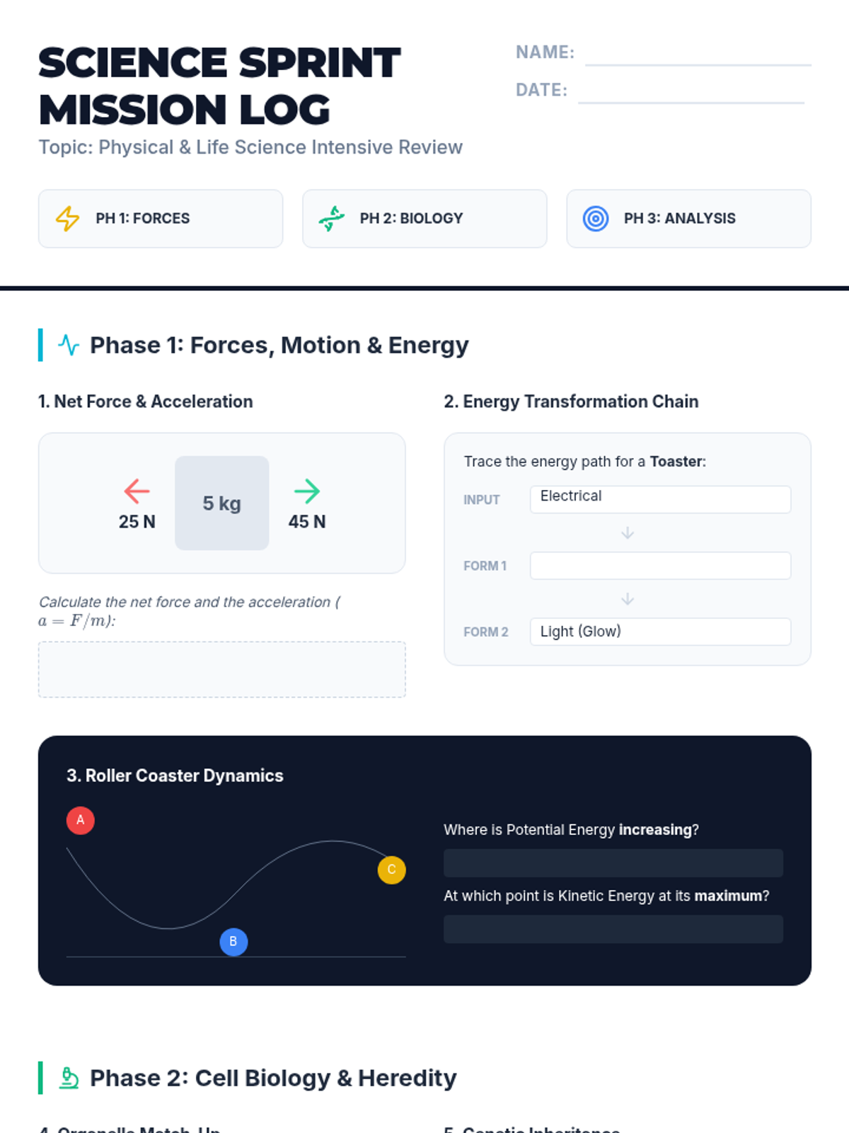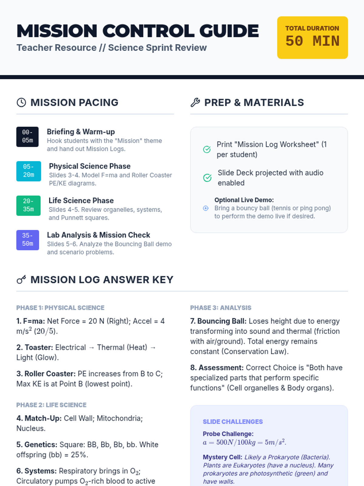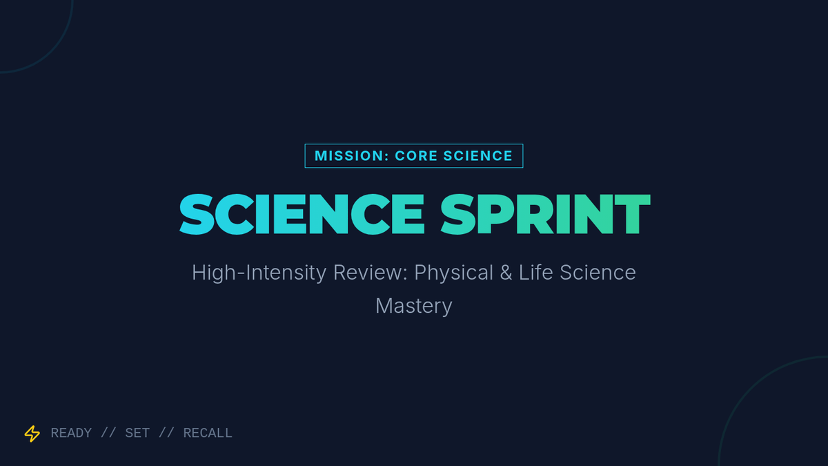 A fast-paced, comprehensive review of middle school physical and life science concepts, featuring diagram analysis, scenario-based problem solving, and a virtual lab demonstration analysis.