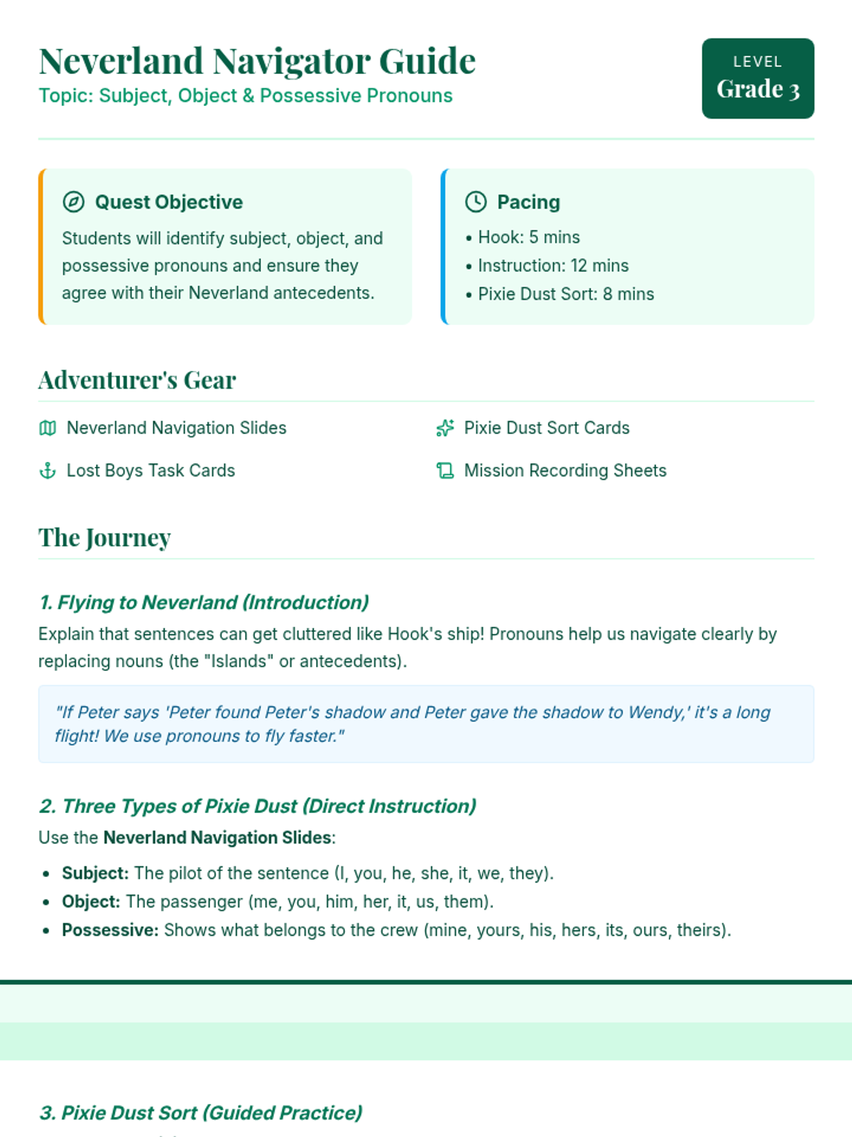A collection of nine decodable Readers Theater scripts designed for below-level 3rd graders. Each script targets a specific phonics pattern (digraphs, VCe, vowel teams, R-controlled vowels, diphthongs, consonant blends, long I, compound words, or silent letters) to build reading fluency. Includes scripts for both 3 and 4 students.