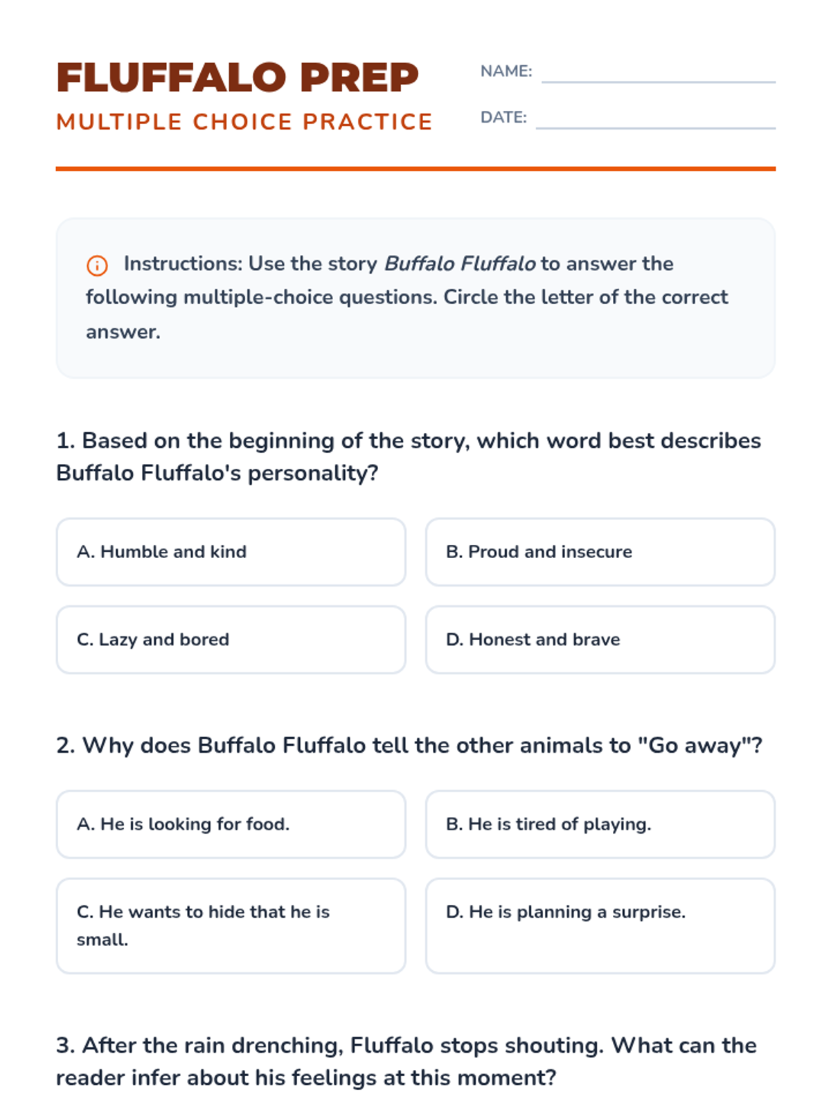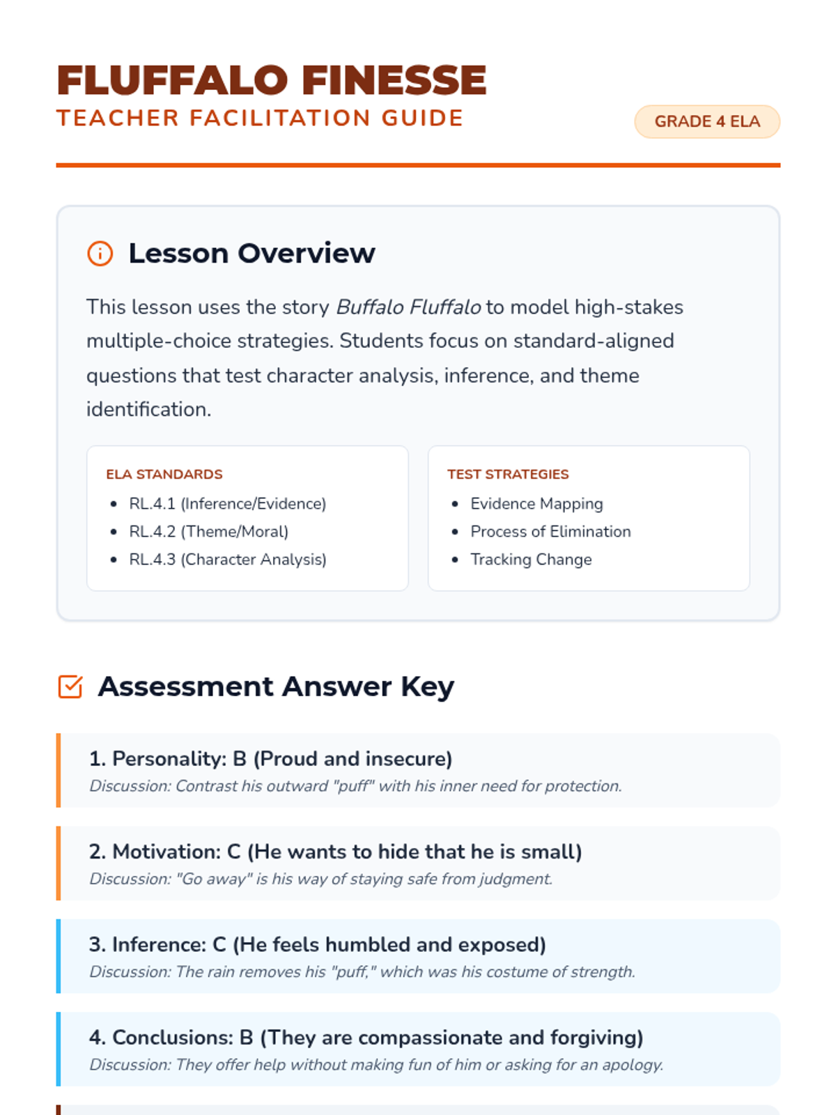 A test-prep focused lesson using the story 'Buffalo Fluffalo' to master character analysis, inference, and theme identification for 4th grade ELA assessments.