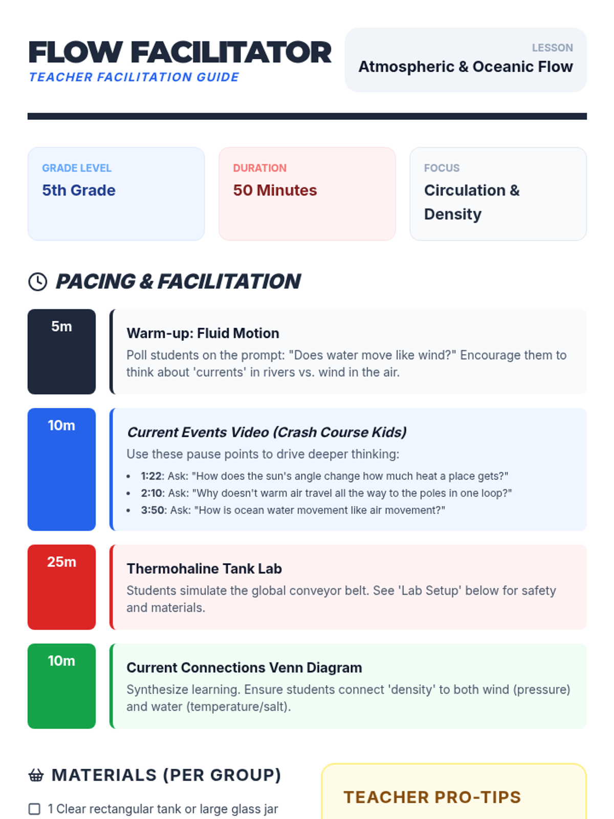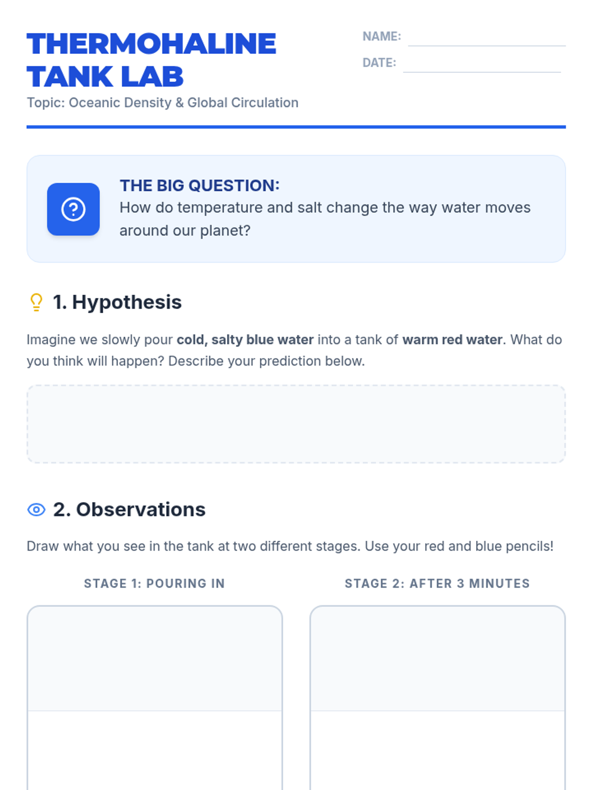 Students explore the parallels between atmospheric and oceanic circulation by watching a Crash Course Kids video and performing a 'Thermohaline Tank' density experiment. The lesson culminates in a comparative analysis using a Venn diagram.
