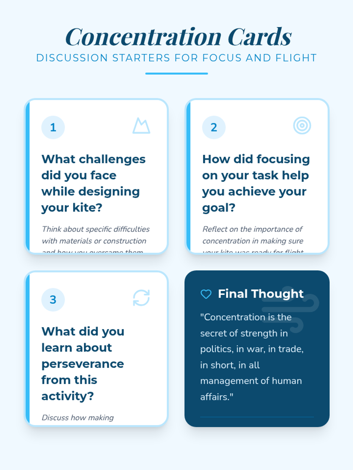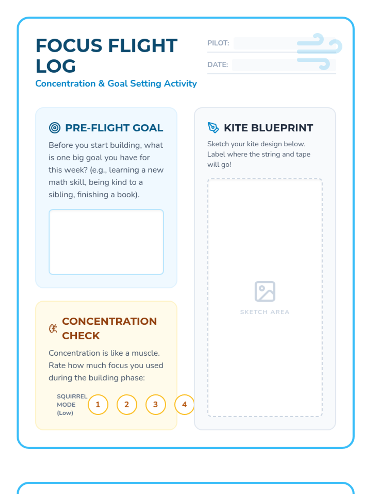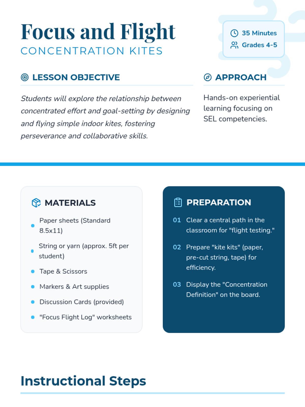 A hands-on SEL lesson for grades 4-5 where students build kites to explore the connection between concentration, perseverance, and achieving goals.