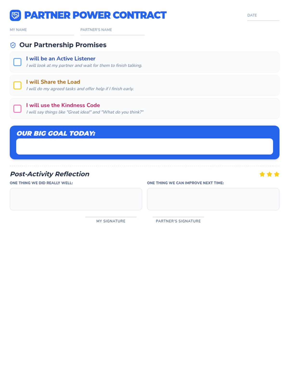 A focused session on the essential social-emotional skills required for successful peer collaboration, including active listening, equitable responsibility, and kindness.