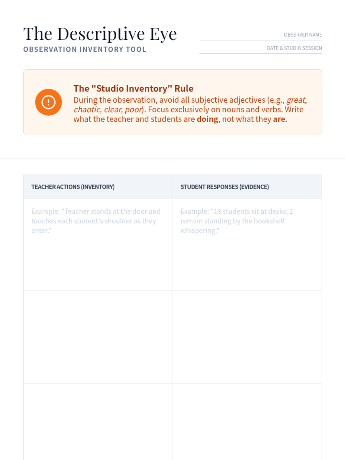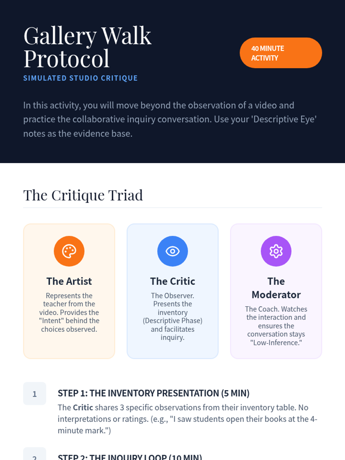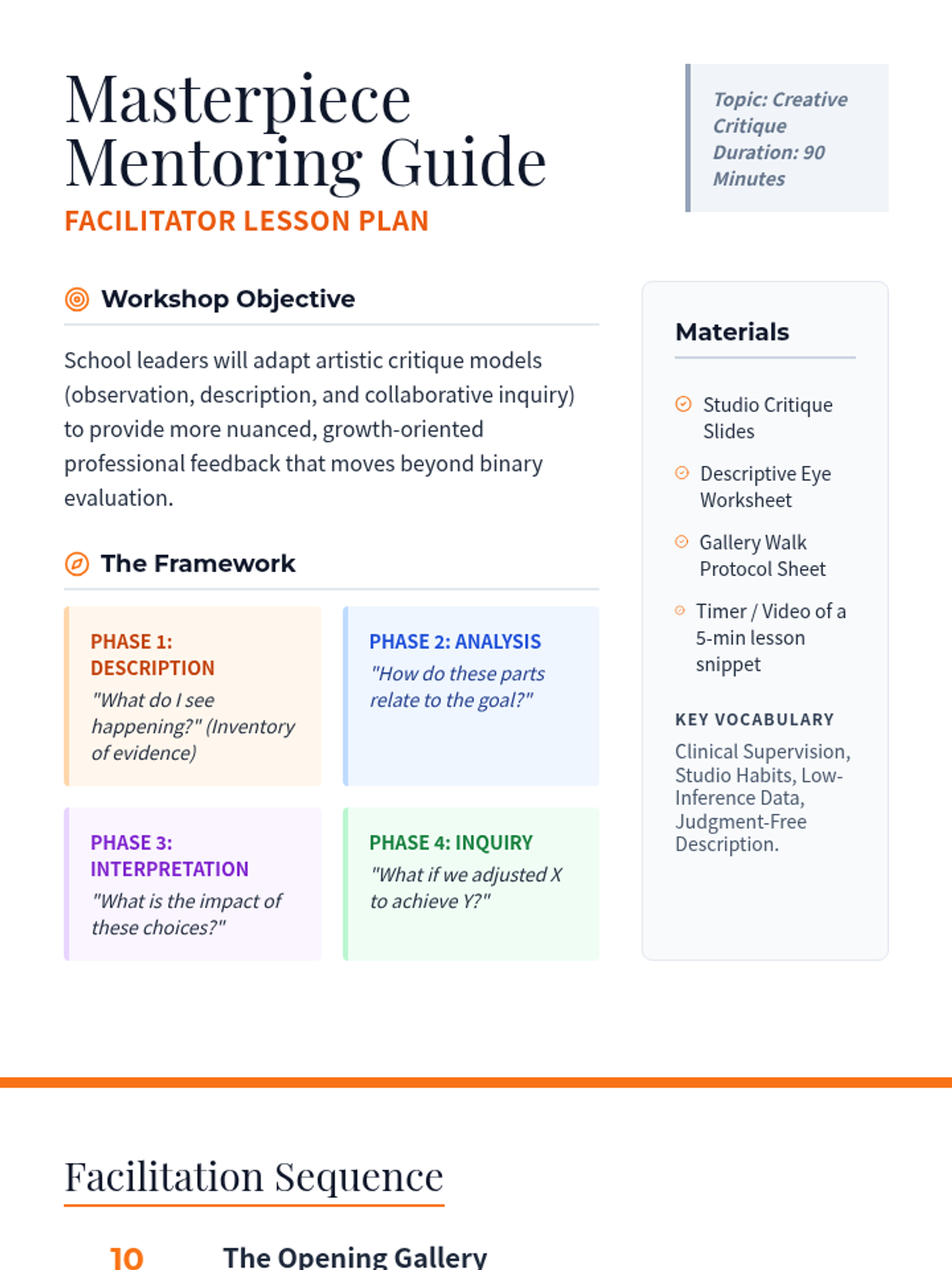 In this session, school leaders explore the 'studio critique' model from art education and apply it to classroom observations, focusing on objective description and collaborative inquiry.