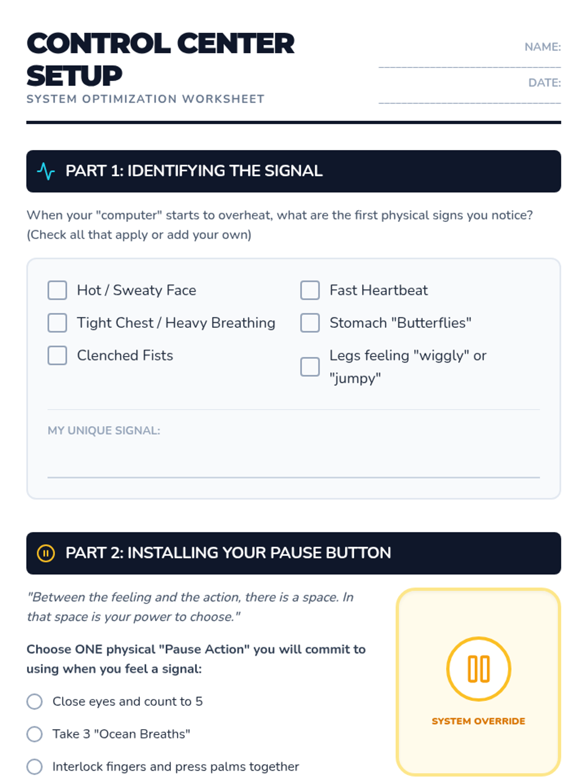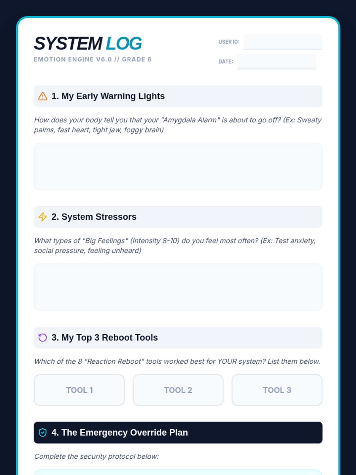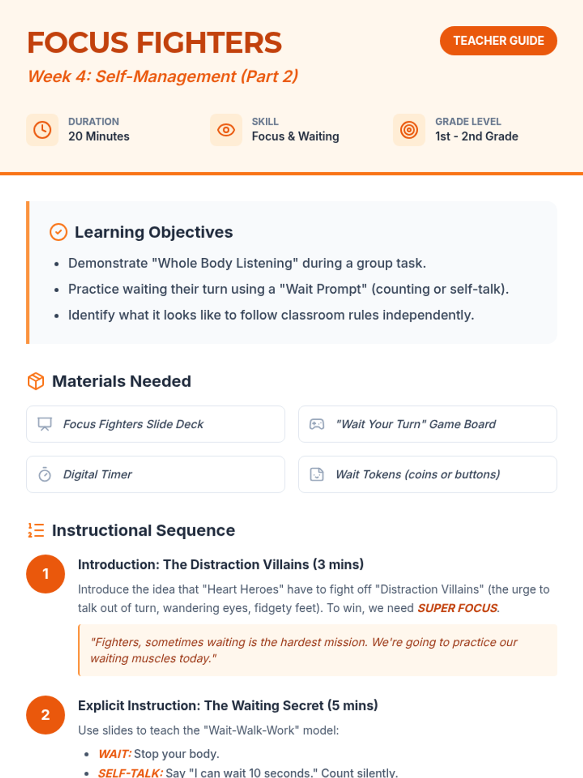 A comprehensive lesson designed for 5th-grade students to master self-regulation by learning to identify emotions and pause before reacting. Includes instructional slides, a visual anchor chart, a guided activity, and a teacher facilitation guide.
