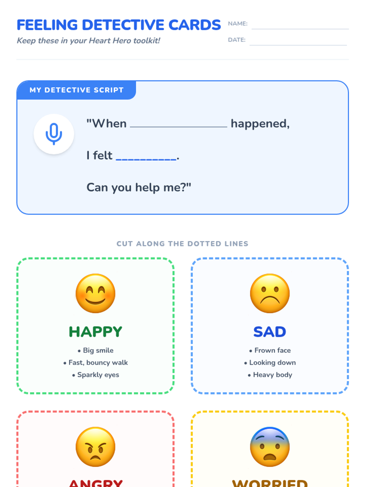 Students learn to identify and name basic emotions in themselves and others, and practice communicating these feelings to a trusted adult.