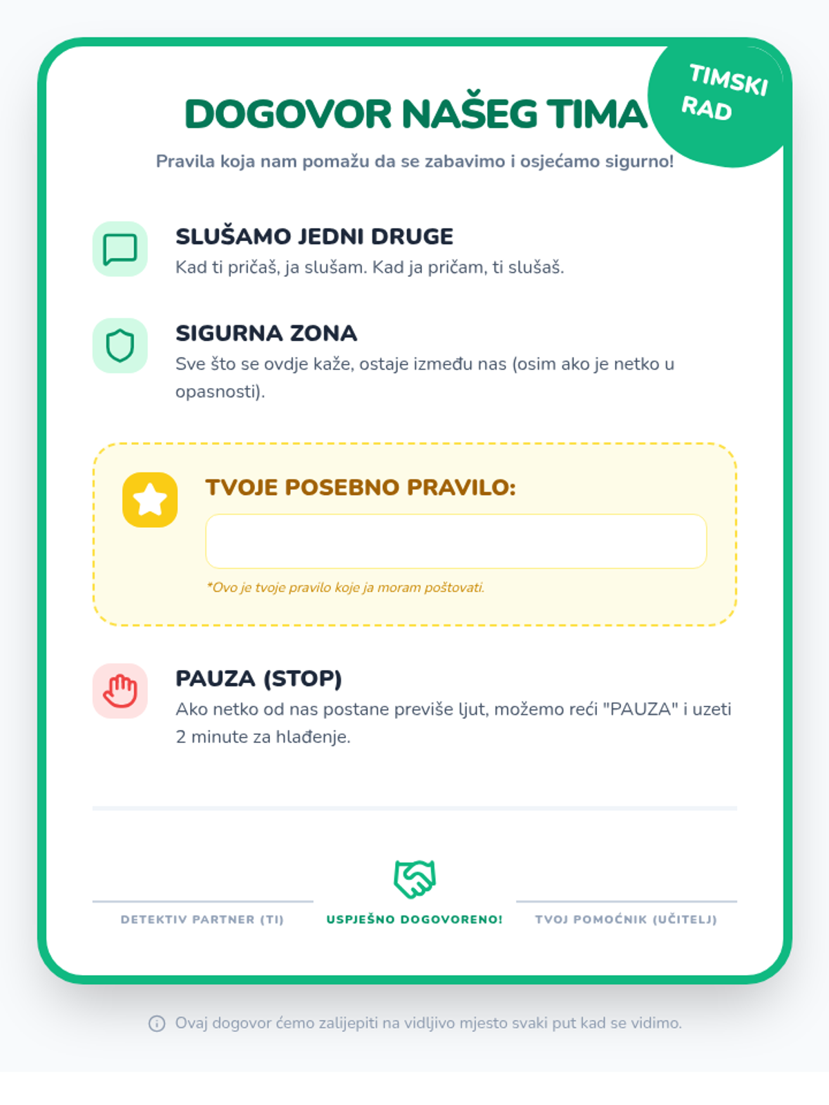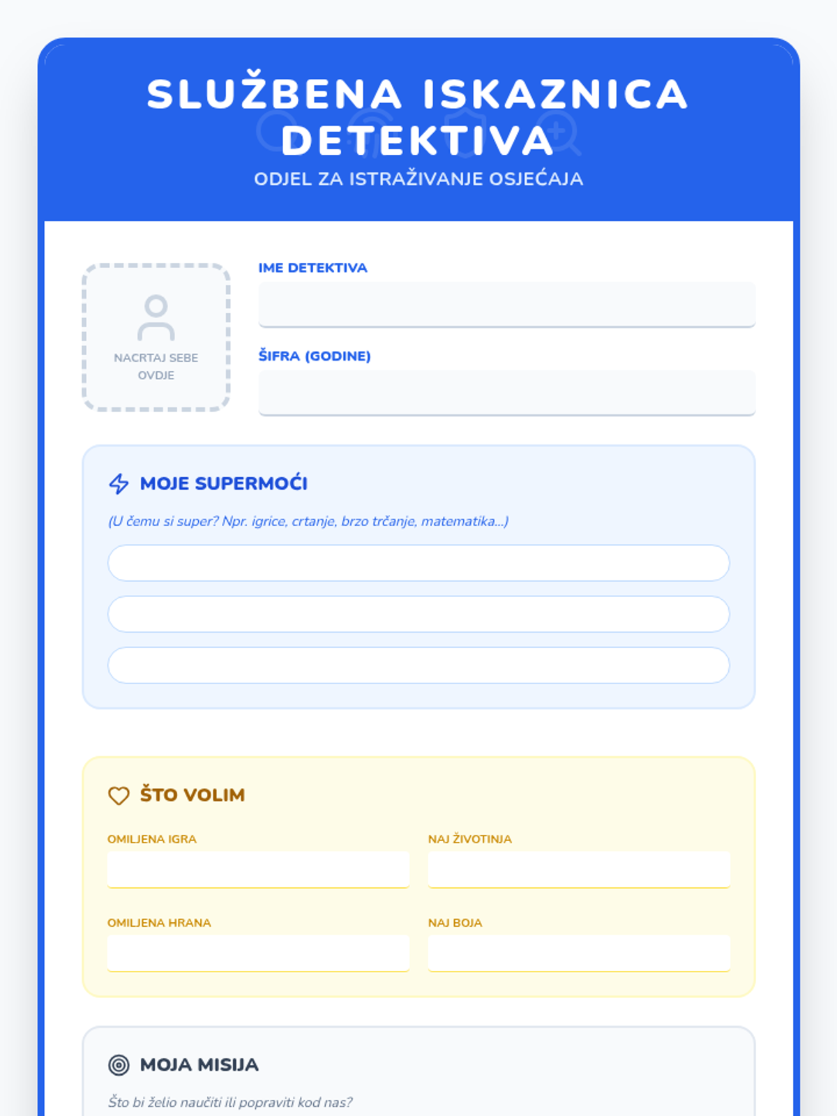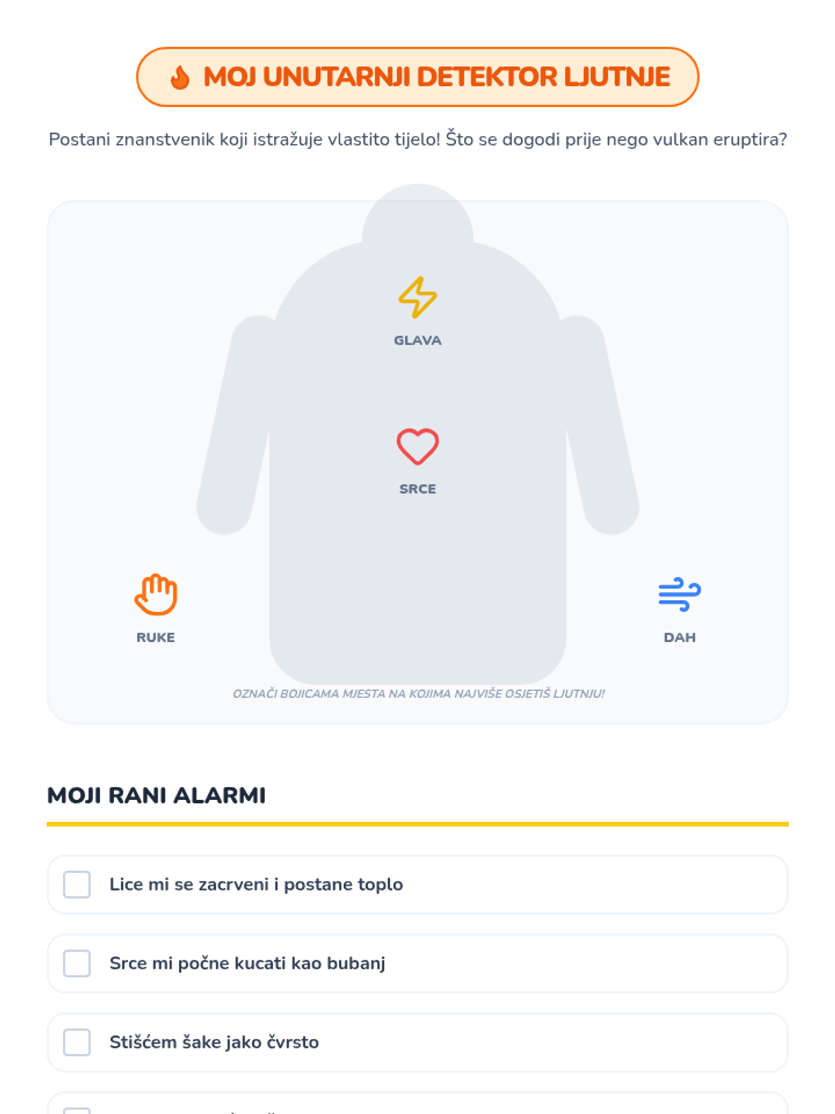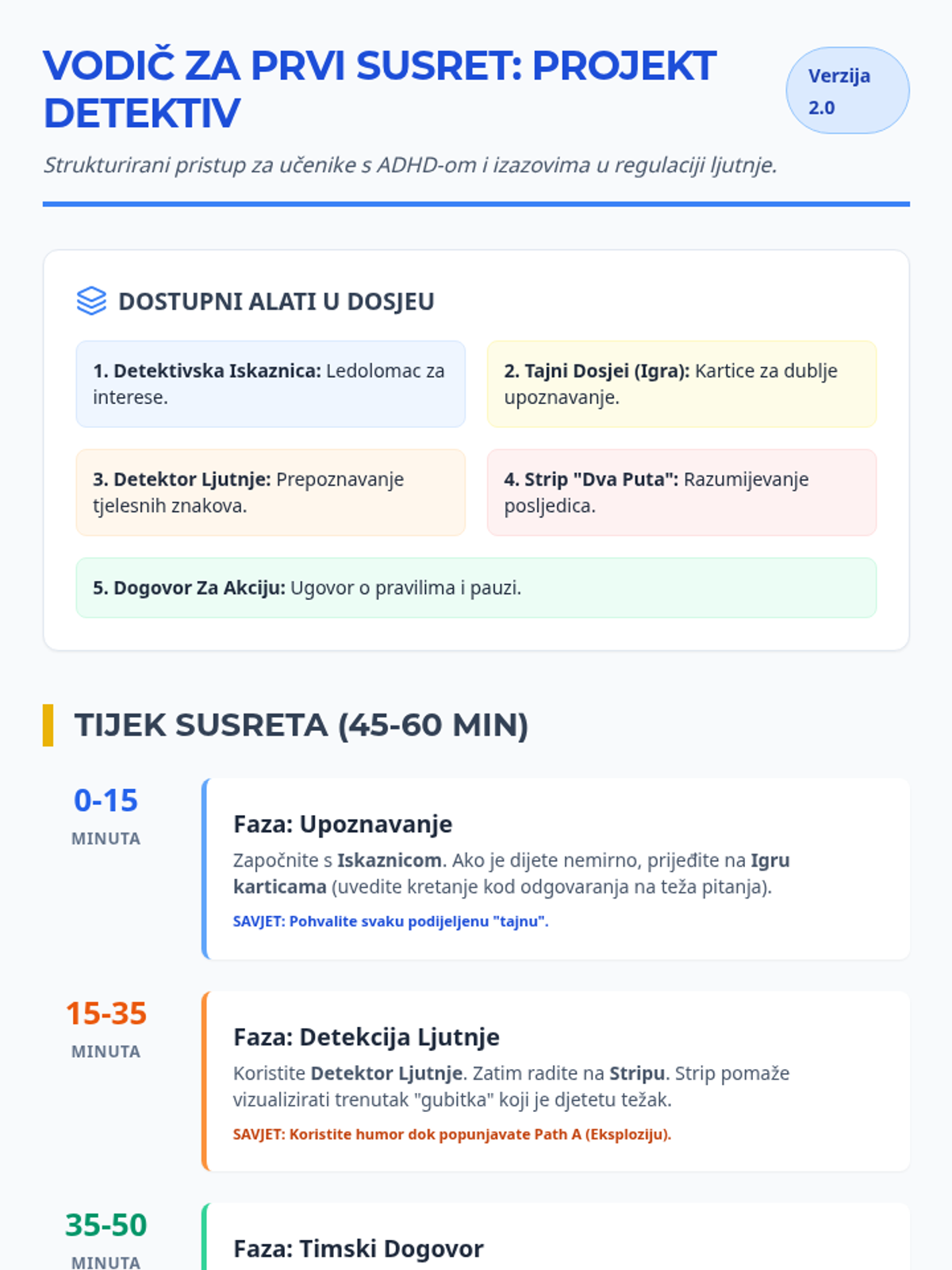 Uvodni susret usmjeren na izgradnju povjerenja, upoznavanje i početak rada na prepoznavanju tjelesnih znakova ljutnje kroz detektivsku temu.
