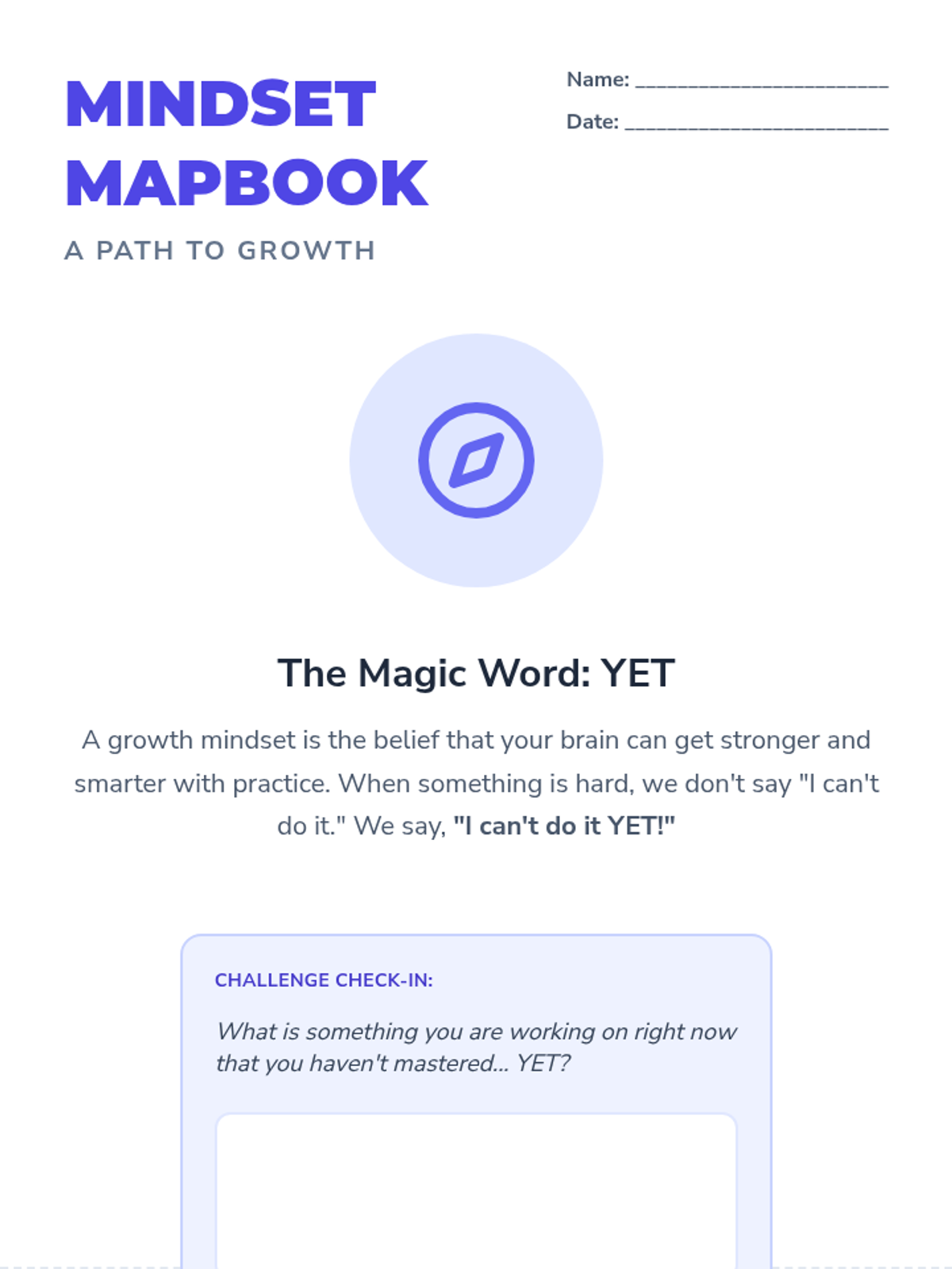 Focuses on developing a growth mindset through a multi-page journal, exploring empathy via slide-based instruction, and providing self-regulation options with a coping choice board.
