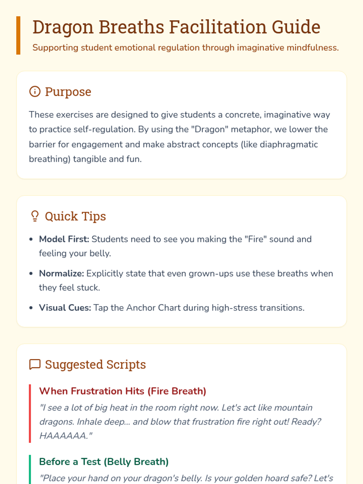A calming set of mindfulness exercises using dragon-themed imagery to help students manage frustration, focus, and anxiety.