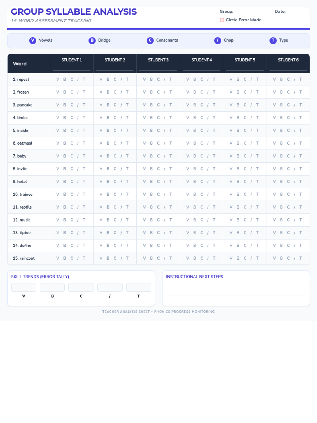 A collection of reading accuracy trackers for Kindergarten and 1st Grade students to monitor their phonics progress.