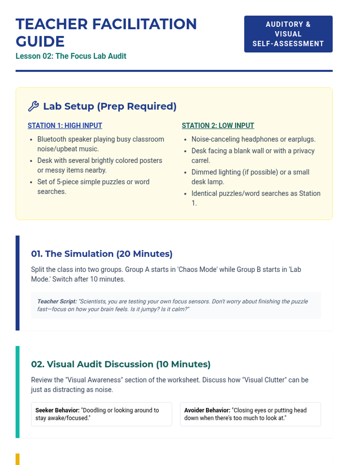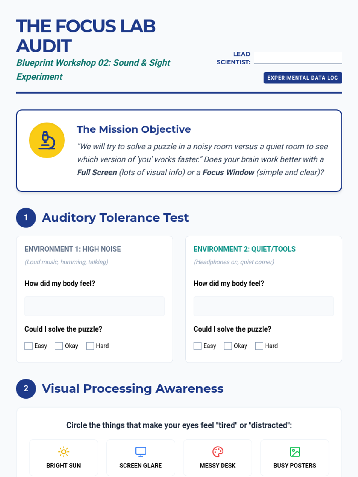 Students conduct experiments to see how sound and visual clutter affect their focus, identifying their personal thresholds for auditory and visual input.