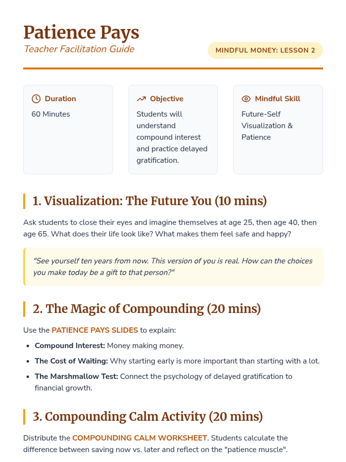 Explores the power of compound interest and the psychological benefits of delayed gratification and long-term planning.