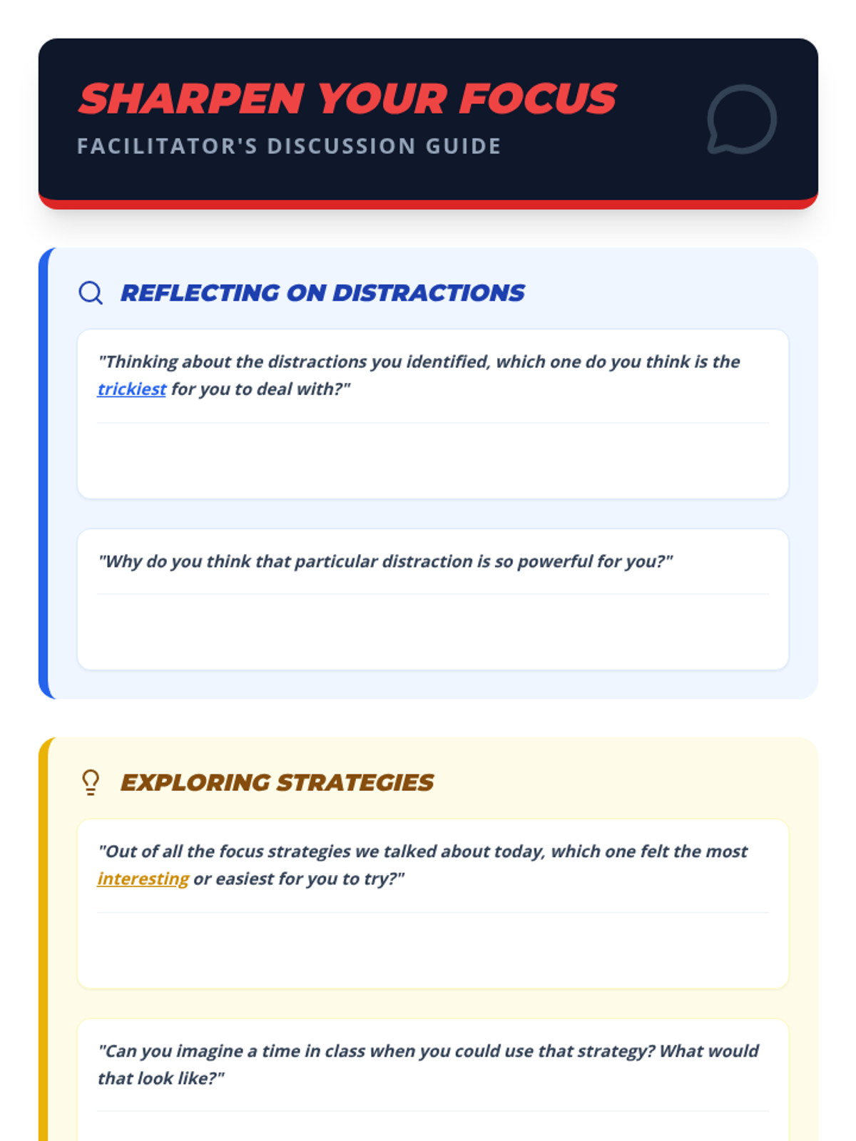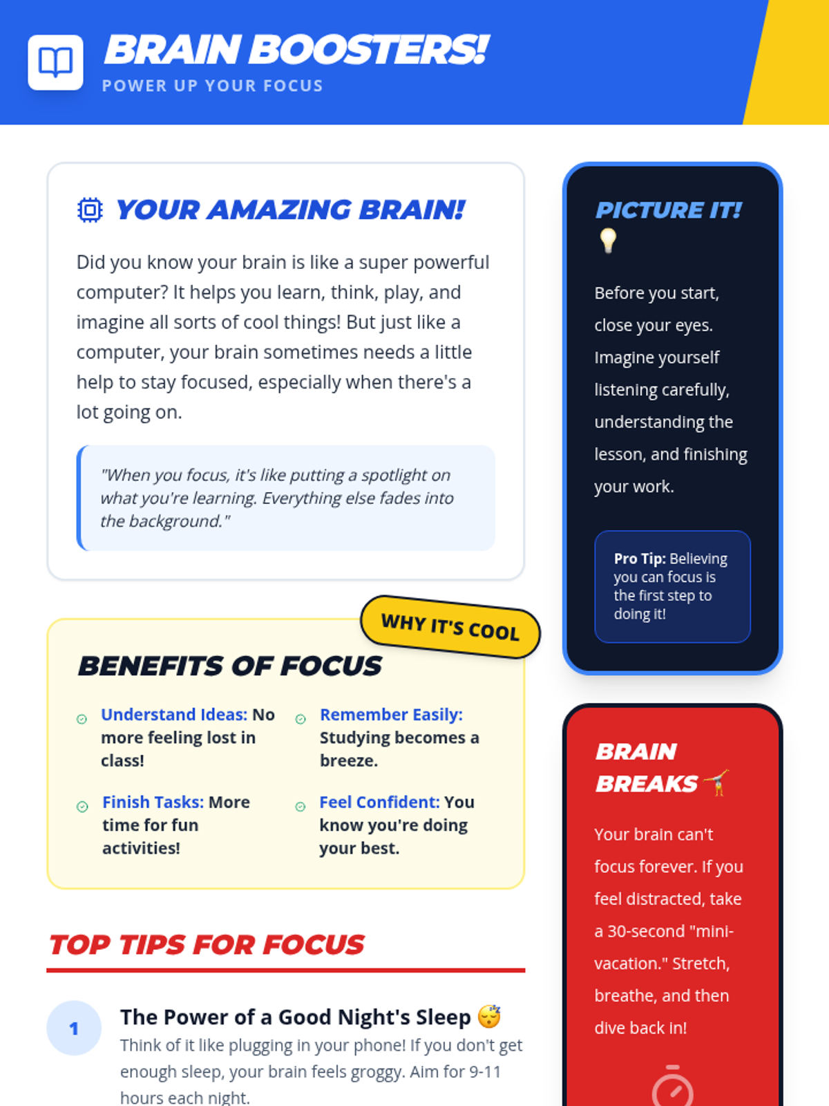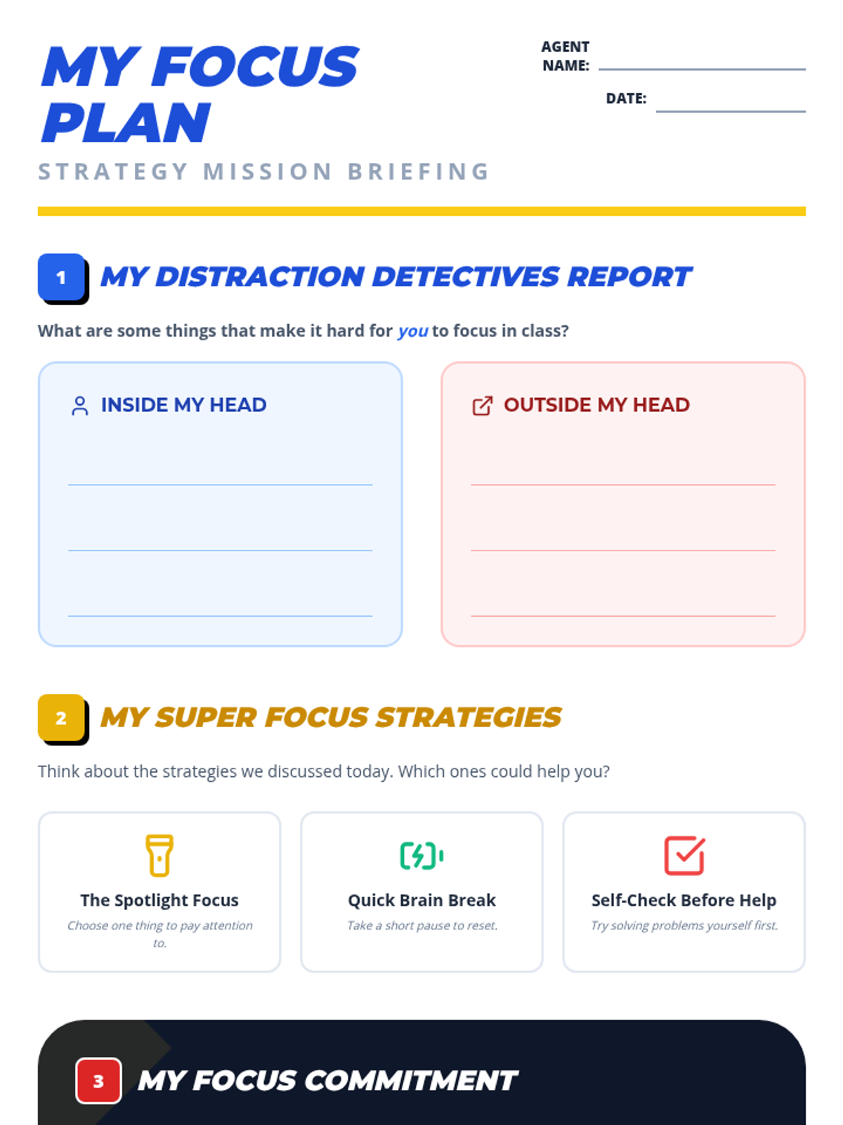 This individualized 30-minute lesson empowers 5th-grade students to master their focus through practical strategies like the Spotlight Focus and Brain Breaks, framed within an engaging superhero theme.