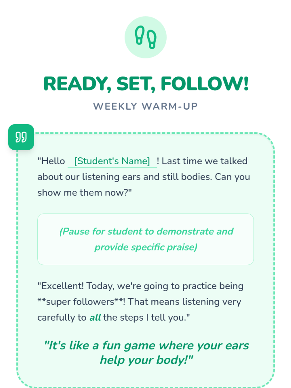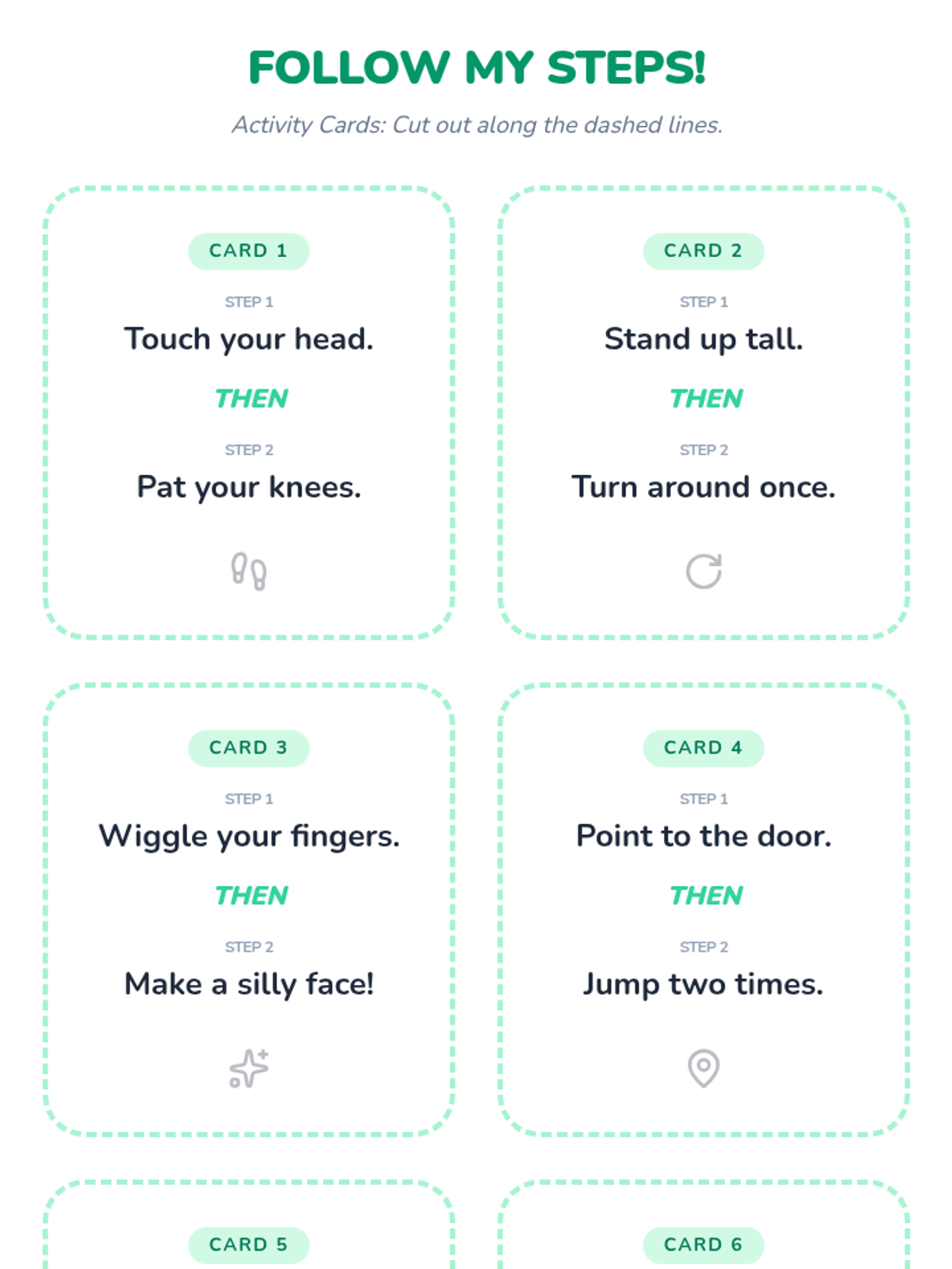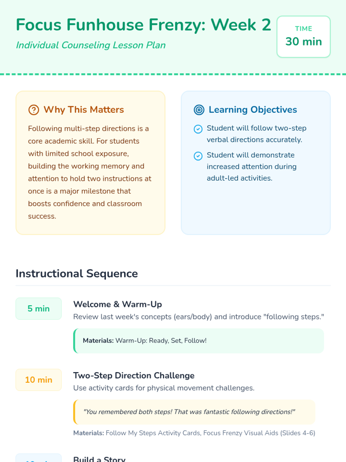 Focuses on listening to and following two-step verbal directions through engaging movement and drawing activities.