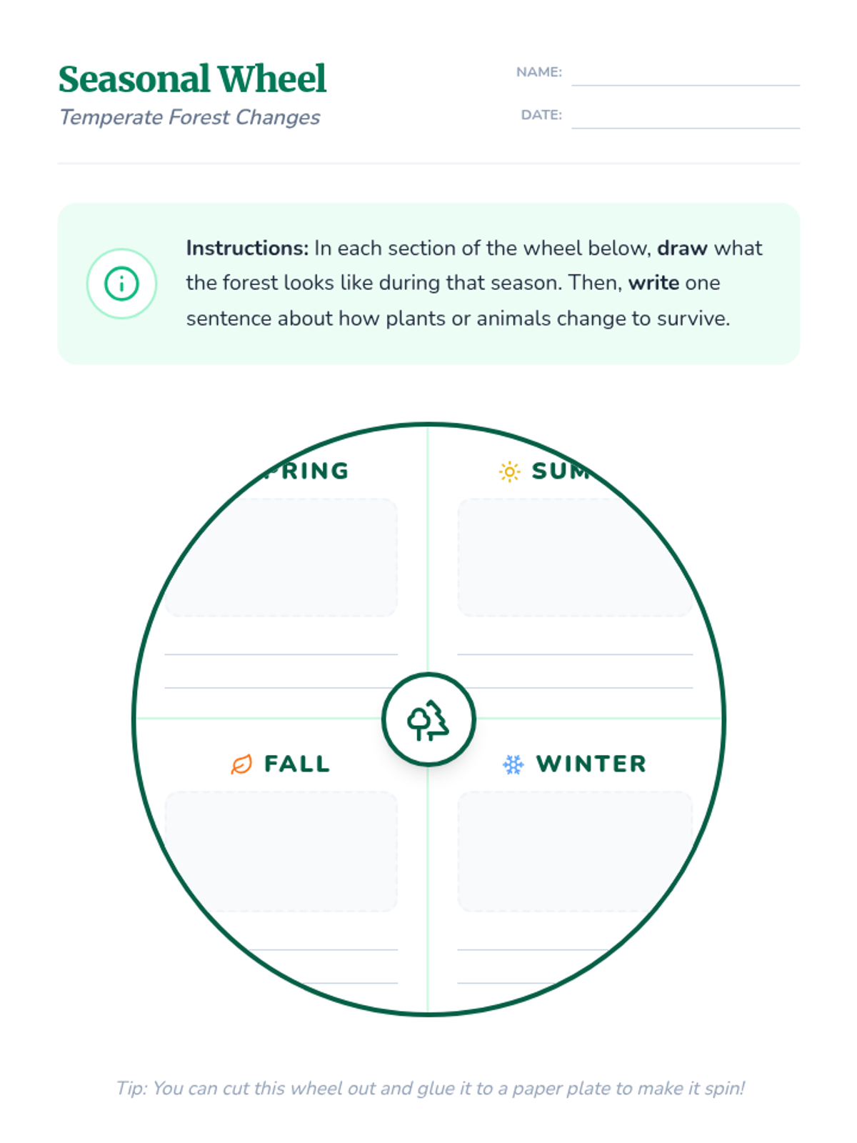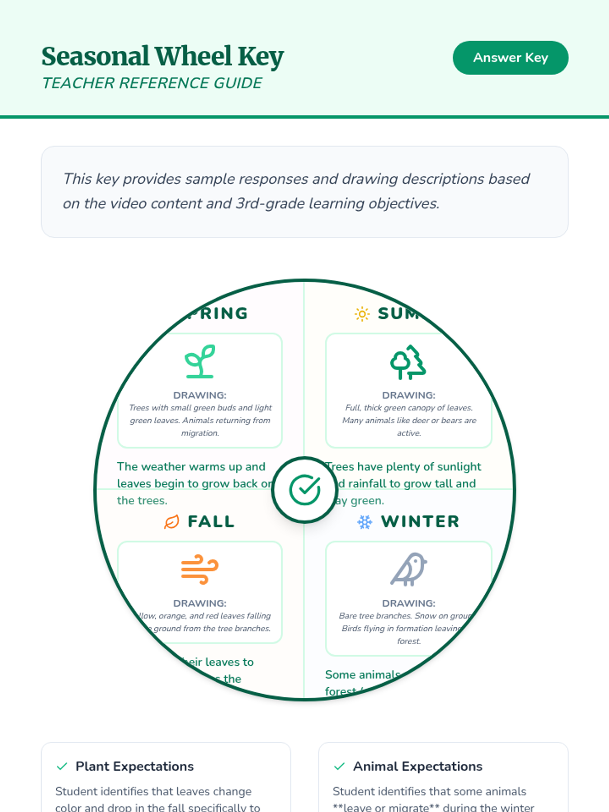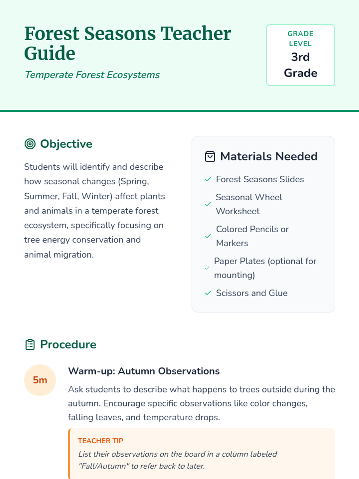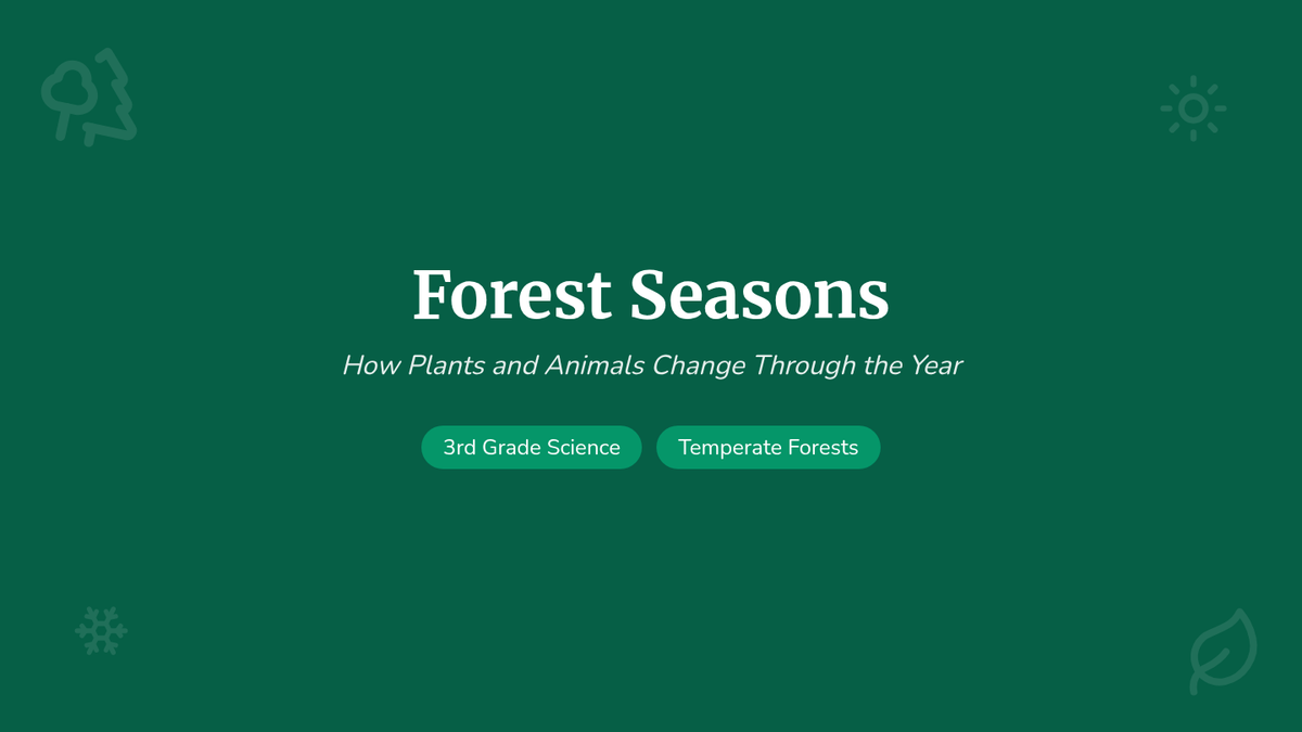 Students explore how temperate forests change through the four seasons, focusing on tree energy conservation and animal migration based on the 'Temperate Forest Ecosystems' video.