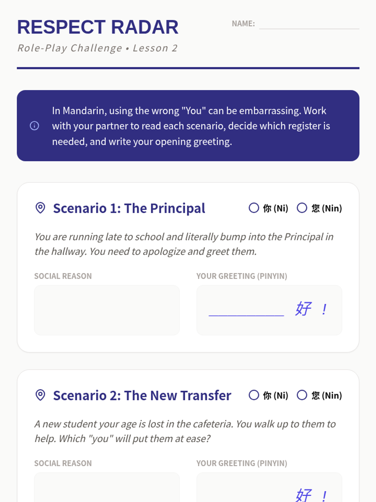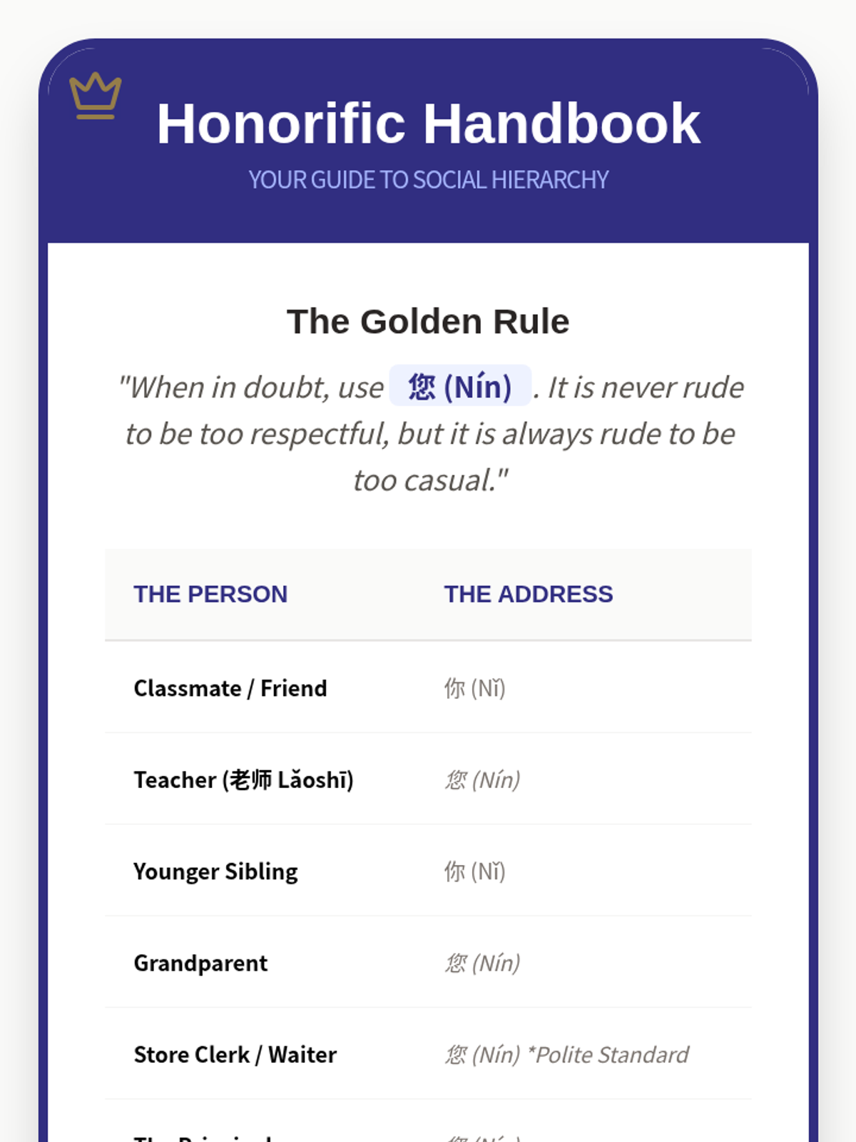 Distinguishes between formal and informal address using 'Ni' and 'Nin', focusing on register shifting and social hierarchy.