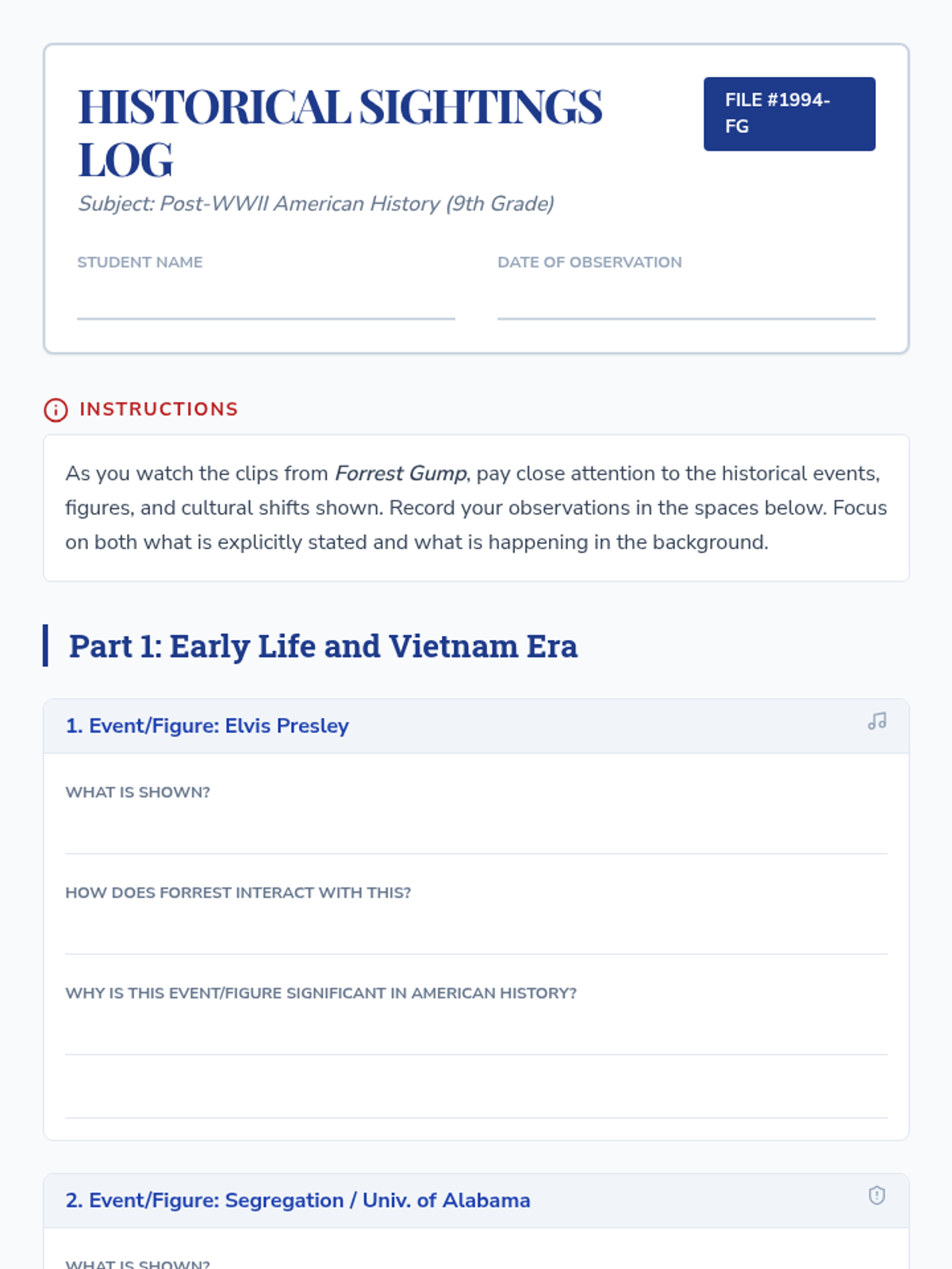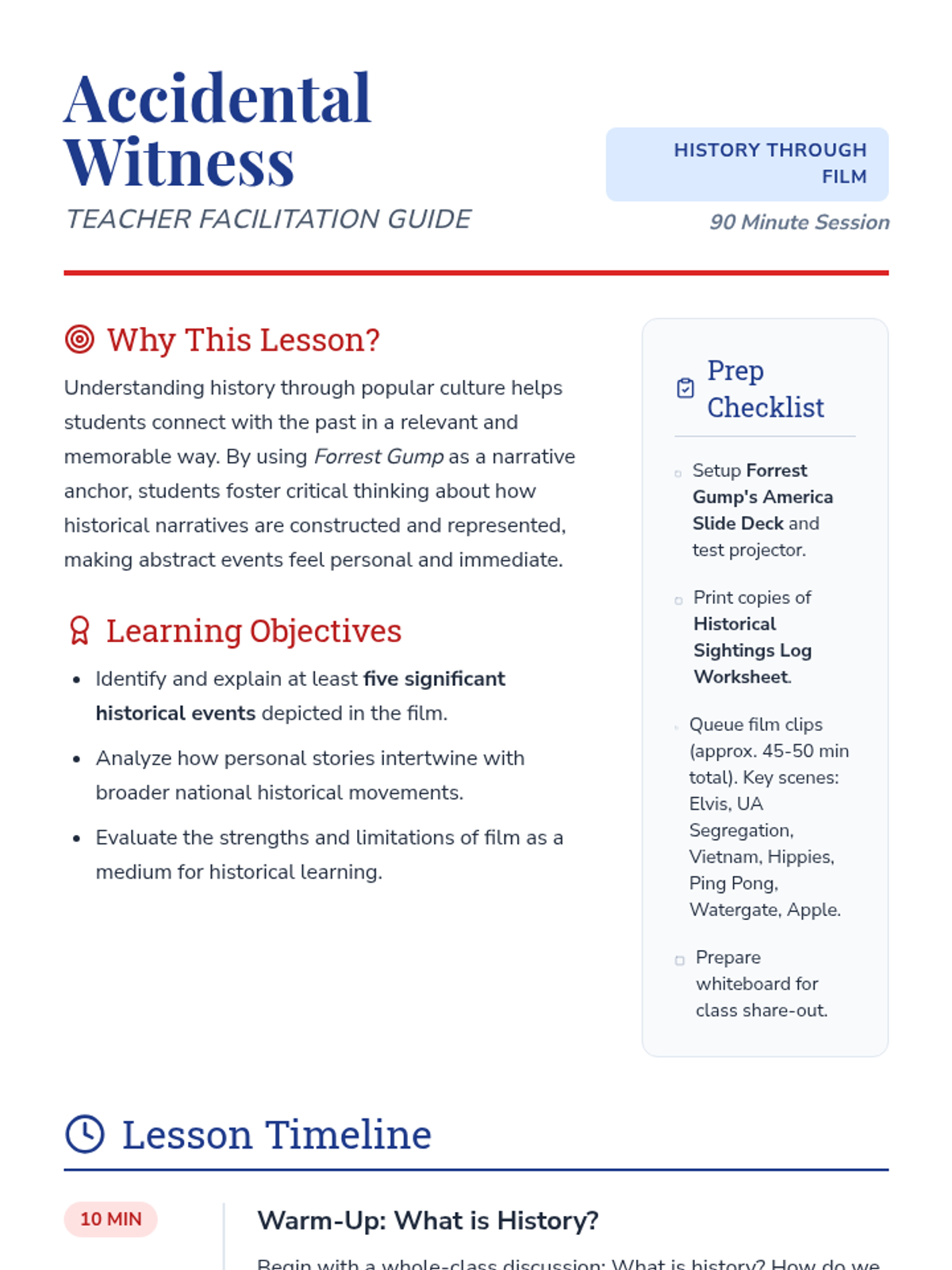 Explore post-WWII American history through the lens of one of cinema's most iconic characters. This lesson uses film analysis to bridge personal narratives with pivotal historical moments like Vietnam, Watergate, and the Civil Rights movement.
