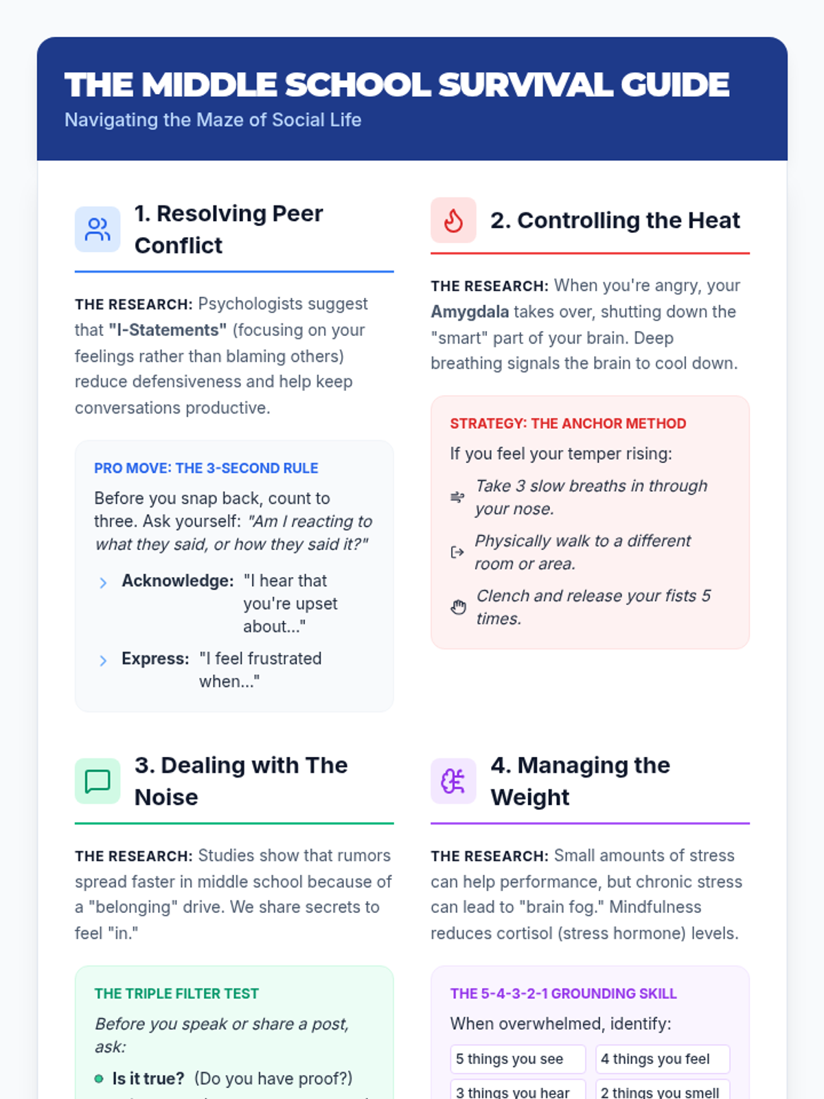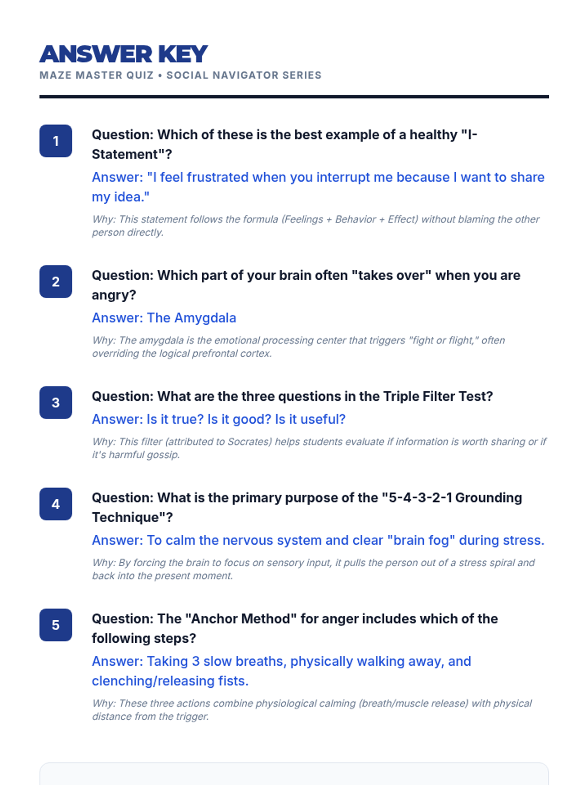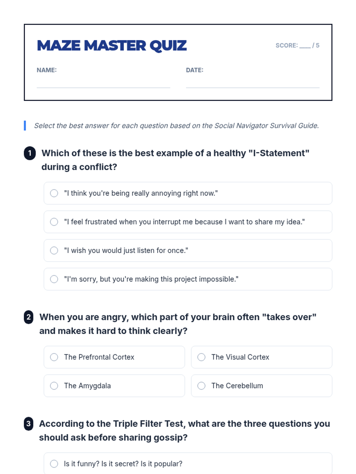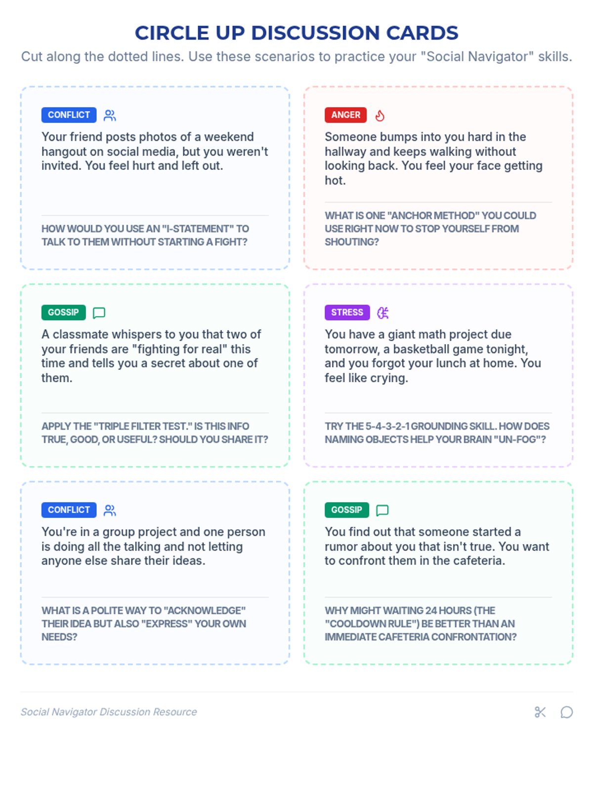 A 30-minute Social Emotional Learning lesson designed for middle schoolers to develop strategies for managing defiance, peer conflict, impulsivity, and disengagement. Students explore 'Cool Head' tools to navigate challenging classroom situations effectively.