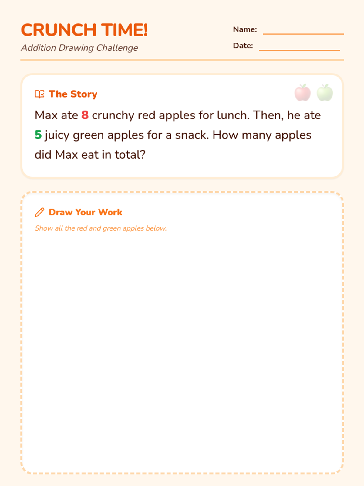 A fun, food-themed lesson focused on solving simple addition word problems by combining two amounts within 10. Students will use drawing and equations to represent and solve the problems.