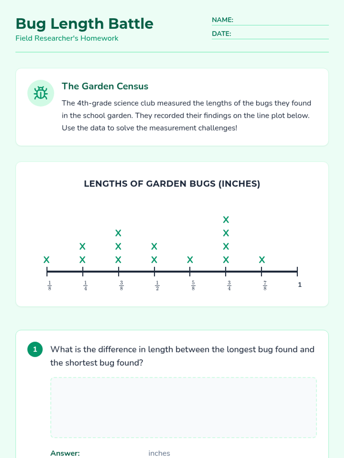 A lesson focused on interpreting line plots and performing subtraction with fractional data points, themed around a backyard nature study.