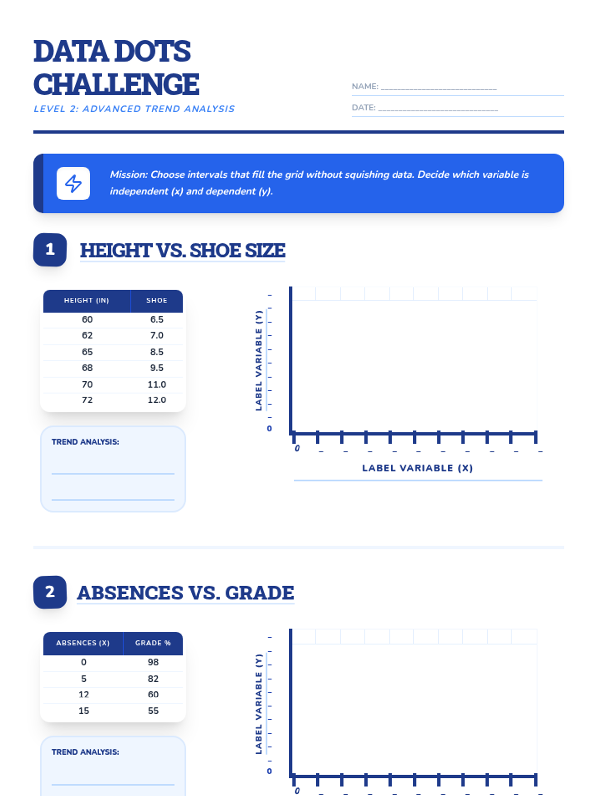 A hands-on investigation into scatter plots, lines of best fit, and identifying outliers using real-world scenarios like test scores and plant growth.